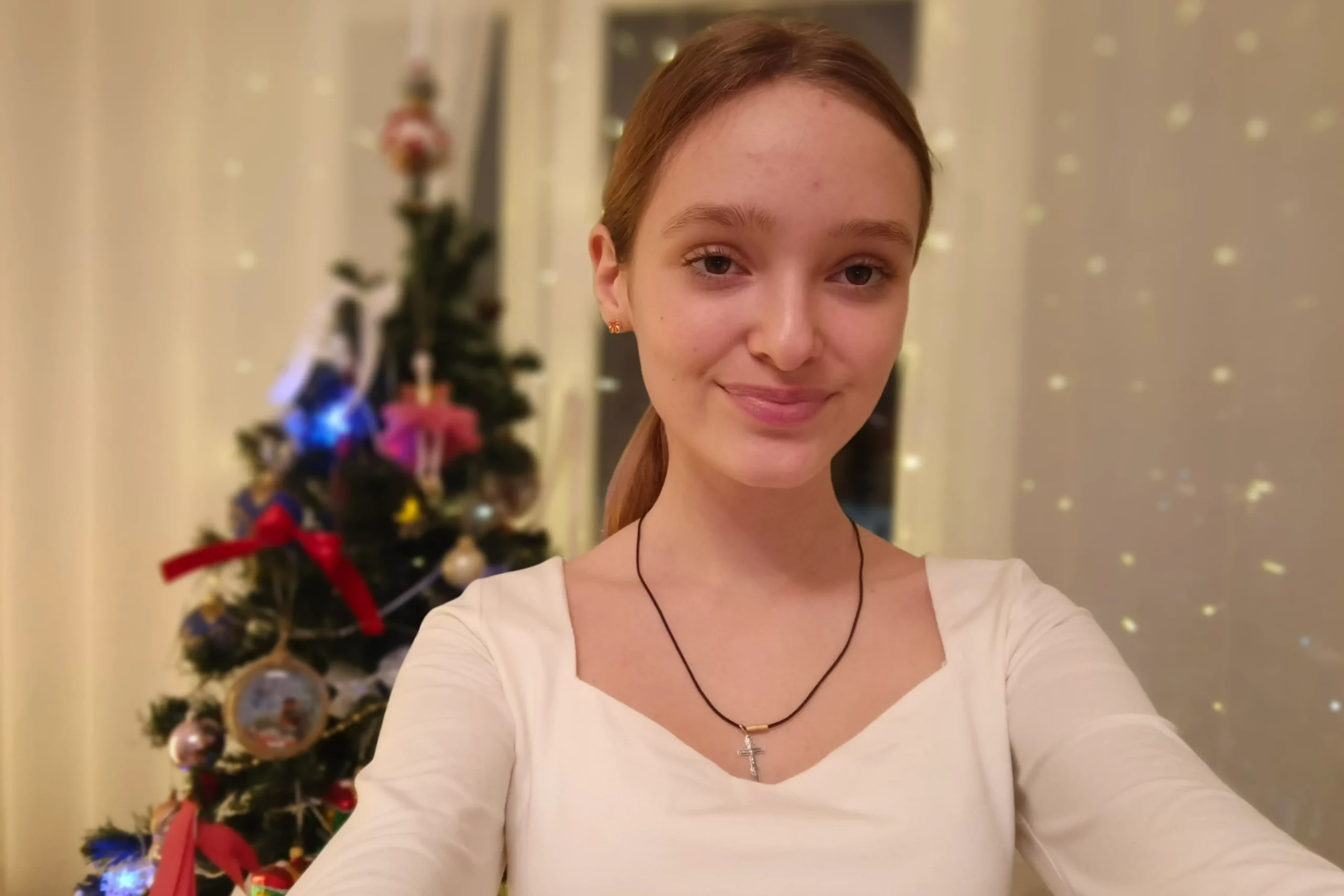 TECNO Spark 30 Pro занимает среднее положение: он не перебарщивает с обработкой, но контраст в кадре повышает заметно. Фото смотрятся неплохо. Включенный по умолчанию в настройках камеры водяной знак несколько подпортил впечатление. Узнать о его применении во время съемки нельзя. Белая полоска с параметрами съемки будет видна лишь при просмотре отснятых кадров, но этот знак можно легко отключить в настройках. Зато TECNO Spark 30 Pro — явный лидер в отношении селфи-камеры: у него и разрешение выше, и «шумов» меньше.