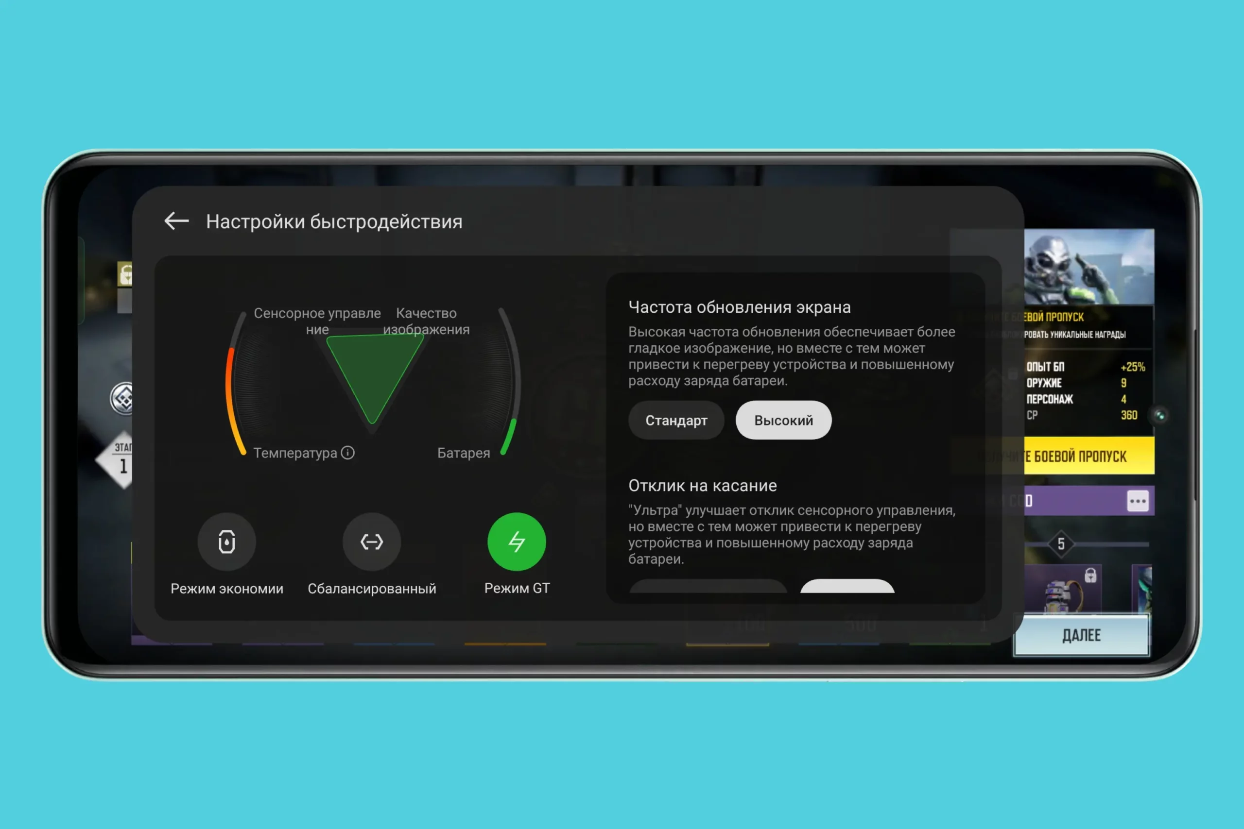 Тут уже намного интереснее. realme 13+ 5G работает на высокопроизводительном процессоре Dimensity 7300 Energy 5G. И он считается самым энергоэффективным в своем классе. В таких играх, как PUBG: Mobile и Call of Duty Mobile, он показывает себя отлично. У меня в AnTuTu смартфон собрал 744 139 баллов, что говорит о высокой производительности и плавной работе интерфейса. У компании realme при тестировании вышло 750 000 баллов. Кроме того, у realme 13+ 5G сверхбольшая площадь испарительной камеры и 9-слойная система охлаждения, так что о перегреве смартфона во время потной катки точно не стоит переживать. Проверила это утверждение — нагревается действительно несильно.