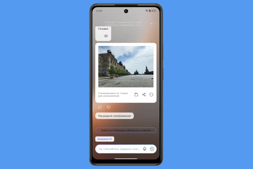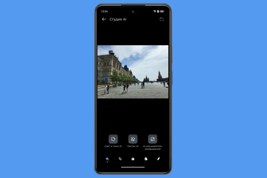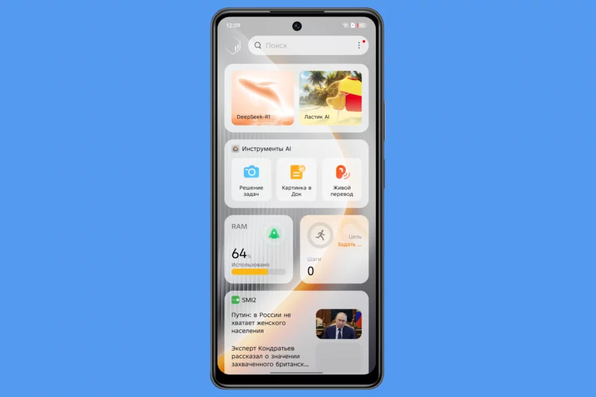 Некоторые ИИ-функции смартфона собраны на нулевом экране, который вызывается свайпом вправо с рабочего стола. В приложении камеры есть функция по созданию ИИ-портретов на основе ваших снимков, а в галерее можно обрабатывать фото с помощью ИИ, например, используя умный ластик.