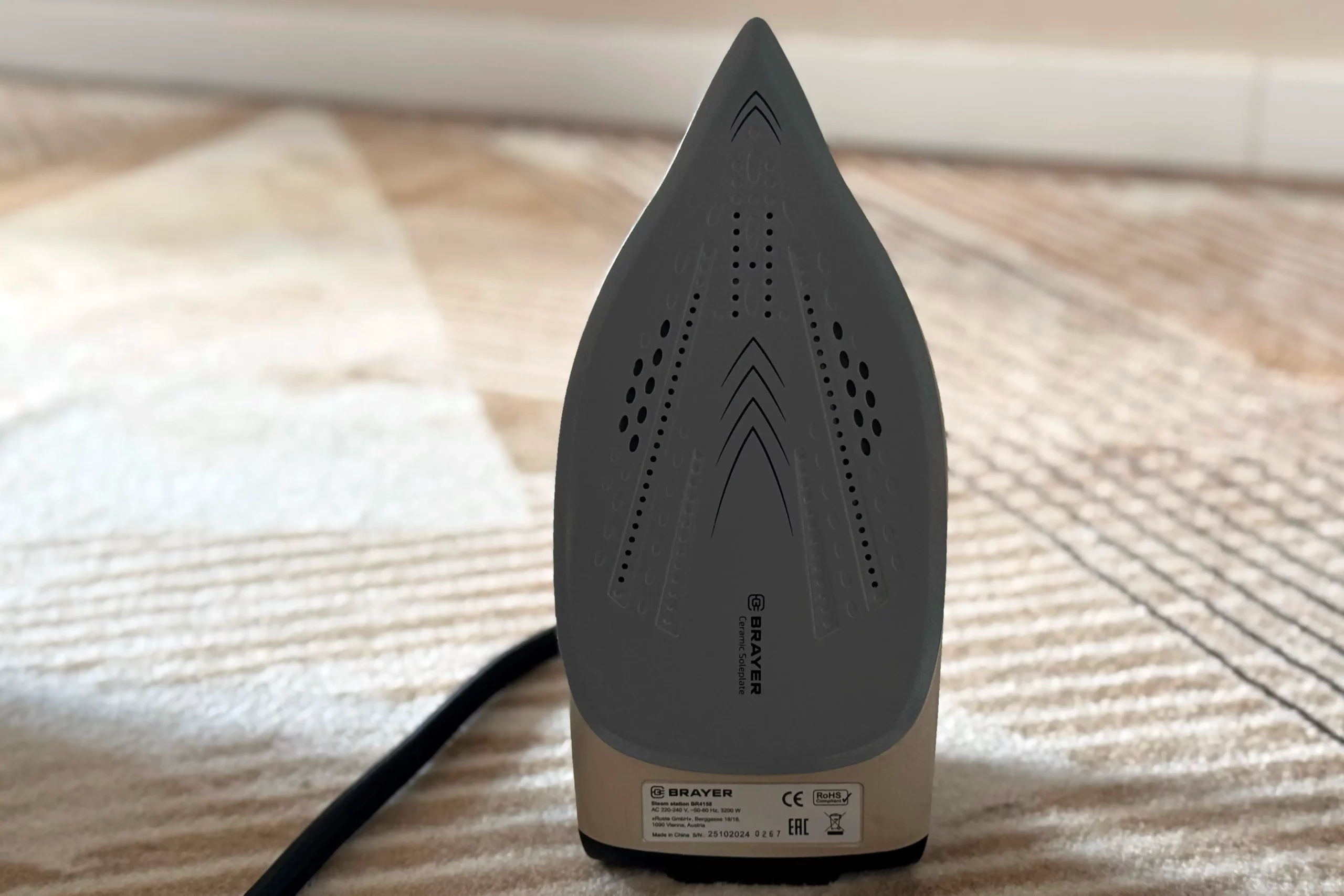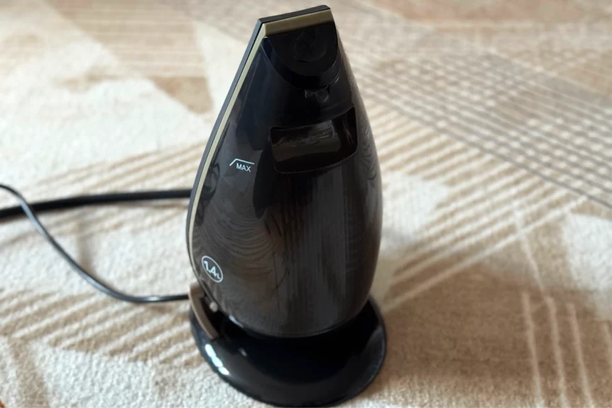 Возвращаюсь к утюгу. Подошва здесь керамическая. Если захотите использовать его как классический утюг, по ткани он будет с легкостью скользить, практически не оставляя складок.