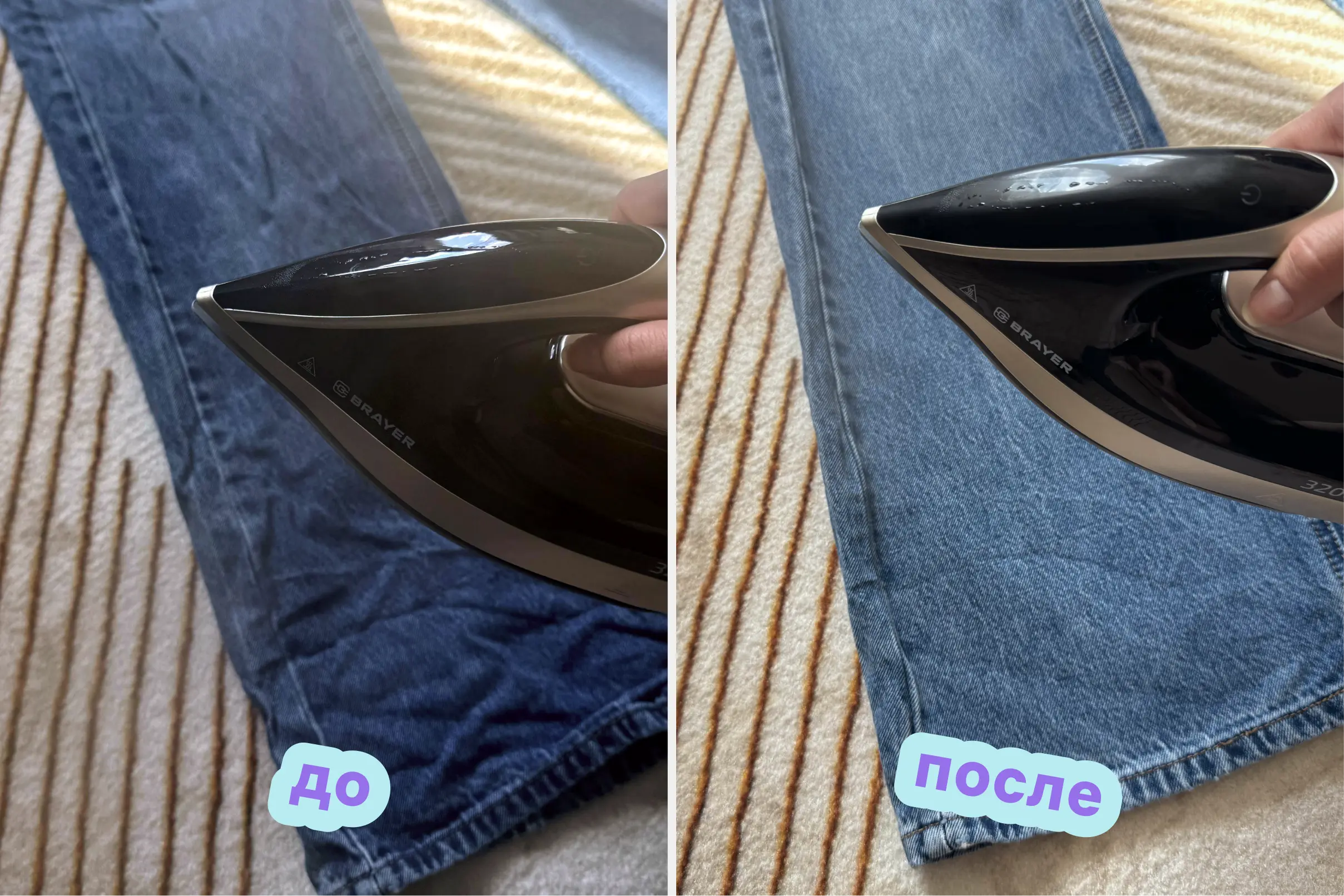 Разница очевидна, согласитесь? Еще заметнее она будет при сравнении двух штанин: сначала я погладила одну половину, а другую оставила так, как было. Как вы думаете, чем я занялась после этого? Естественно, пошла разглаживать все свои джинсы!