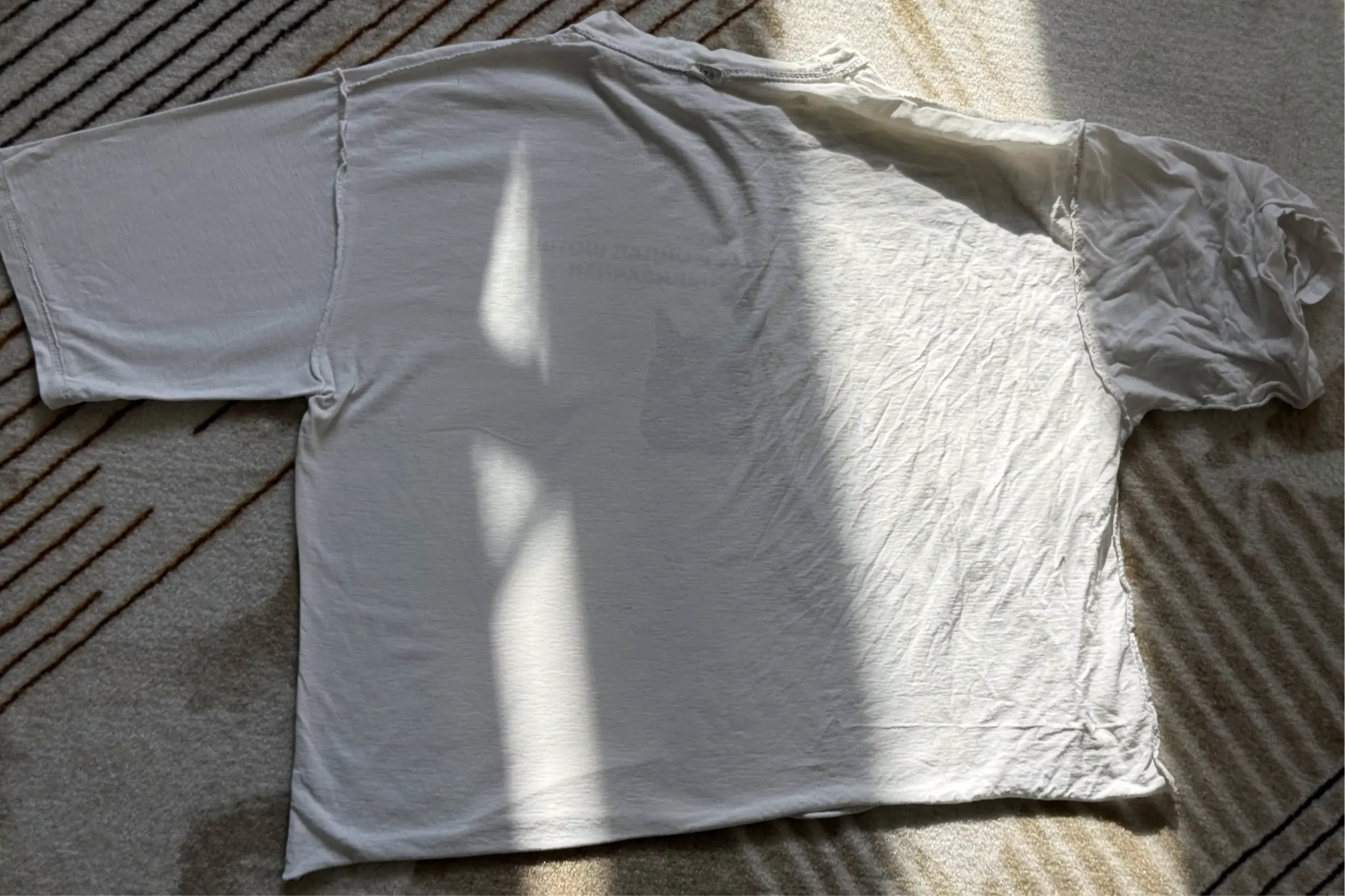 Идем дальше. Проверим, как он справится с белой футболкой: оставит ли следы, капли или заломы?