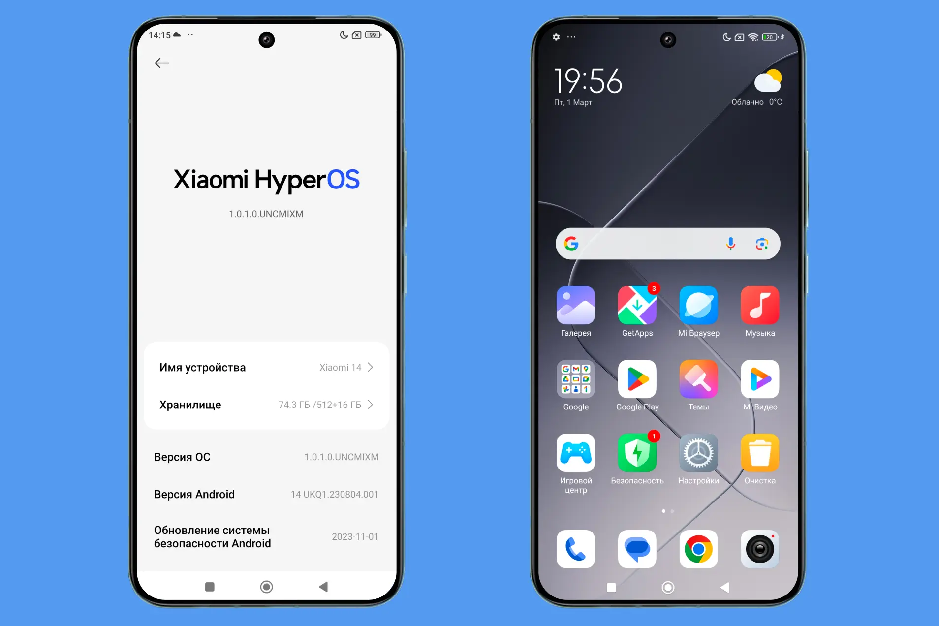 От скорости памяти напрямую зависит практическое быстродействие и отзывчивость. И тут Xiaomi 14 действительно крут. Приложения стартуют очень быстро, все процессы занимают буквально доли секунд. Впрочем, не меньшая заслуга в этом принадлежит и фирменной оболочке HyperOS, построенной на операционной системе Android 14. Нужно признать, оптимизирована она отлично, а за дизайн разработчикам точно можно поставить пятерку.