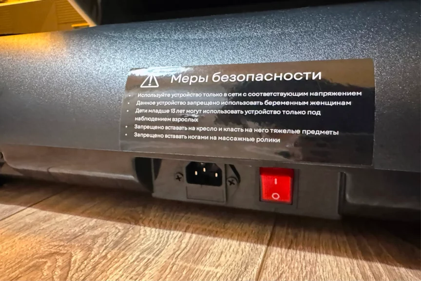 Массажный блок для ног регулируется по высоте. Мне это не пригодилось, а вот мужу — да! Он особенно оценил, что ногам после массажа очень легко. У него натоптыши, и иногда из-за них становится больно ходить. После сеанса в кресле боль как рукой снимает еще до похода к подологу.