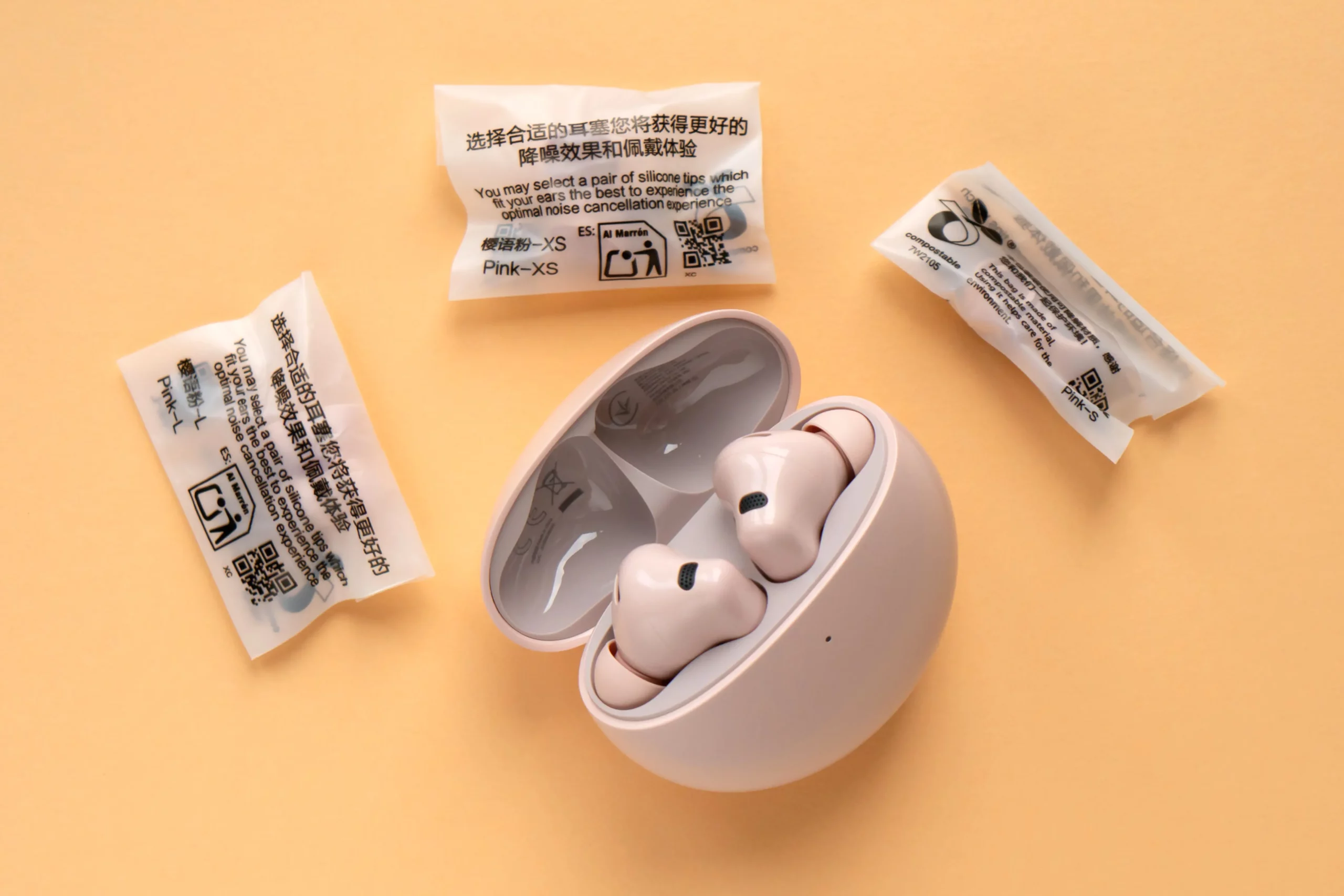 В картонной упаковке вы найдете чехол с наушниками, краткую инструкцию и три пары сменных насадок разного размера. Кабеля для зарядки нет. Впрочем, это вряд ли станет проблемой: подойдет любой стандартный Type-C (например, от вашего смартфона).