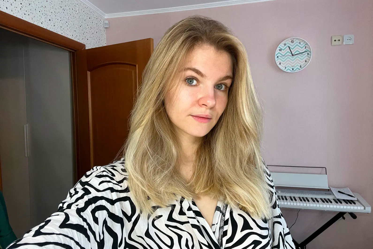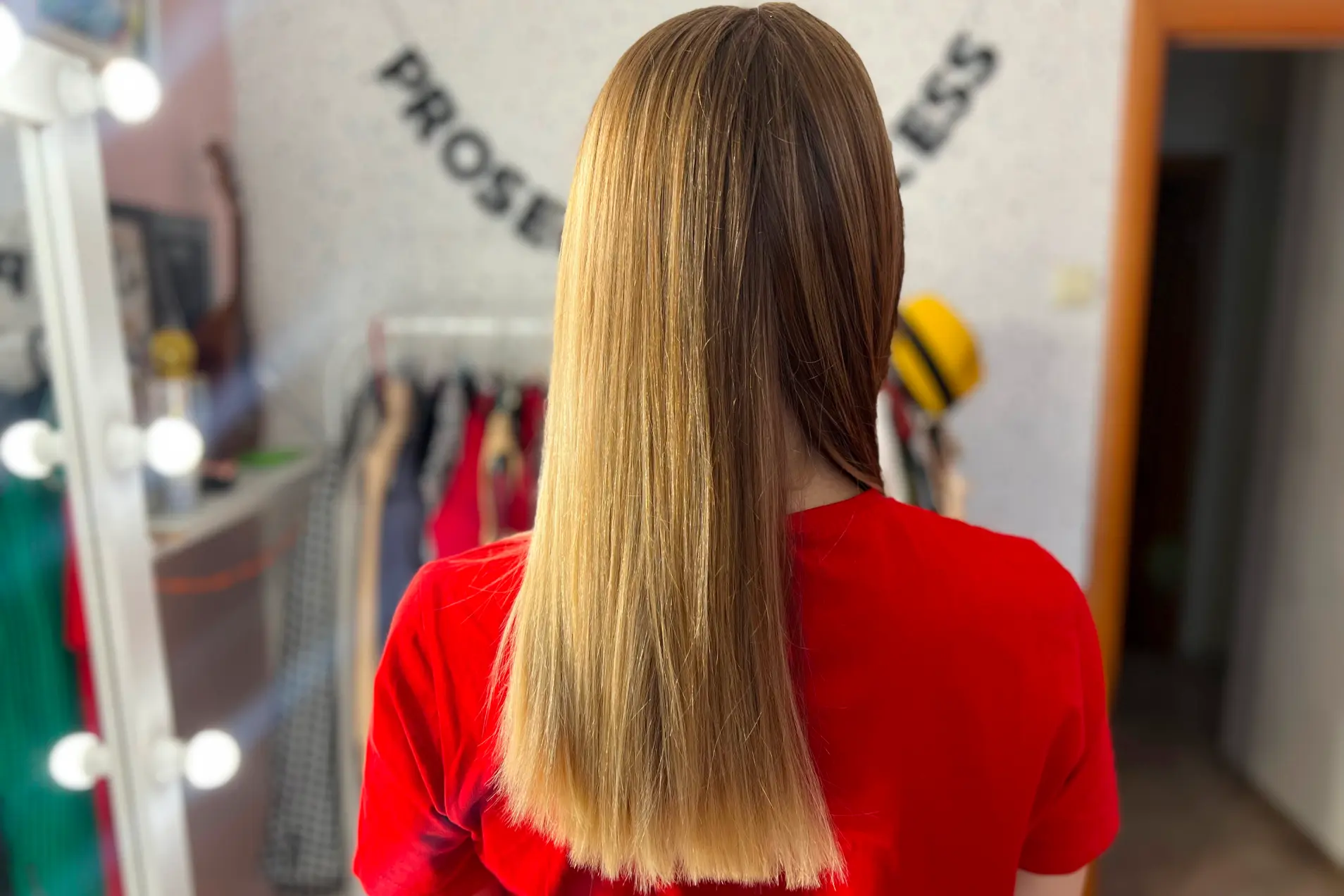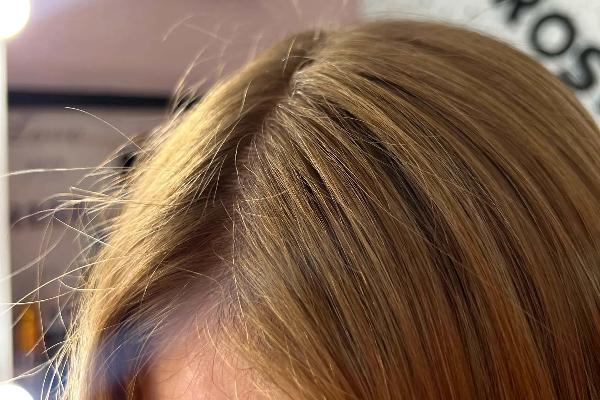 У меня волосы ниже лопаток, окрашенные в блонд, достаточно густые. Для чистоты эксперимента я разделила их на две части. Обработала всю голову термозащитой — рекомендую использовать при работе и с плойками, и с феном. Так волосы меньше повреждаются. Одну сторону сушу с концентратором, другую — с насадкой для бережной сушки. Посмотрим, есть ли какая-то разница.