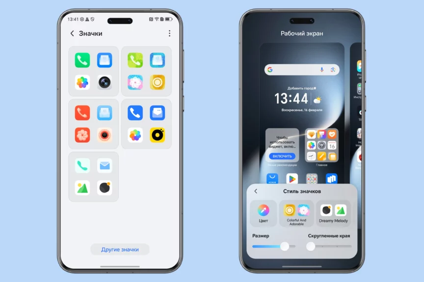 Приложения можно рассортировать по папкам, как в iPhone, а виджеты в шторке стали более закругленными. Размер иконок с экраном настроек стал, как по мне, лучше. Плюс темы можно видоизменять, как и стили с цветом иконок. Отмечу и проработанную анимацию.