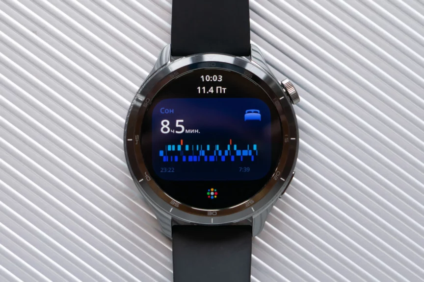 Вес у Xiaomi Watch S4 заметный — около 45 г без ремешка. Нет, рука от них не устает, даже если спать в часах. Но в то же время на запястье ощущается приятная тяжесть. Для людей, привыкших к классическим часам, это скорее плюс.