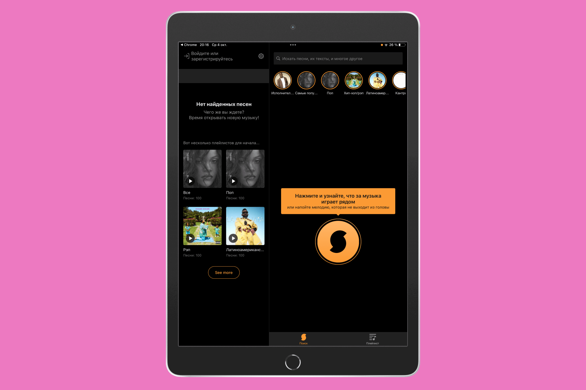 Genius — недооцененная программа для поиска музыки по звуку. Помимо определения композиций, приложение порадует возможностью быстро отыскать трек на популярных стриминговых сервисах и удобным и понятным интерфейсом.
