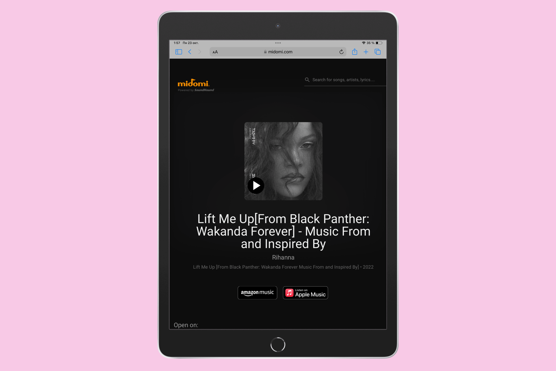 Midomi — удобный онлайн-сервис от создателей приложения SoundHound, доступный на сайте. Чтобы быстро и бесплатно узнать песню, просто перейдите на сайт и запустите трек, предварительно разрешив Midomi использовать микрофон вашего устройства. Вы даже можете напеть мотив песни самостоятельно. Умные алгоритмы сайта проанализируют ваш голос в режиме прослушивания и сразу же отобразят результат на экране.