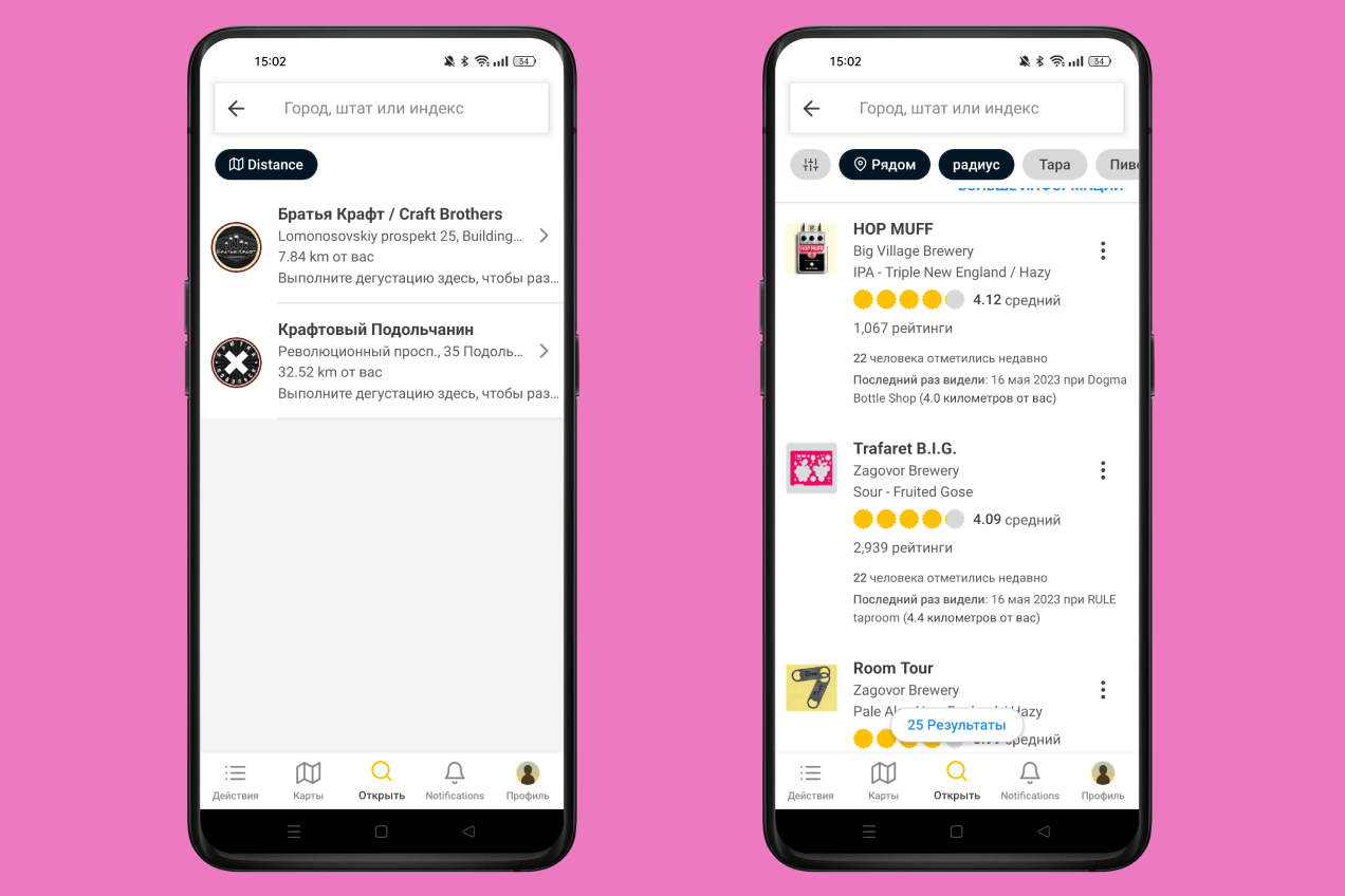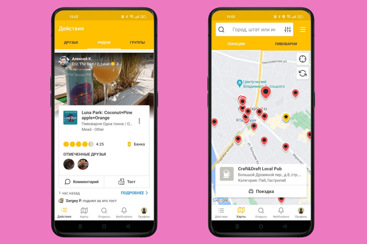 Хотите узнать, какой бар самый популярный в вашем городе? Наведаться вечером в ближайший, чтобы продегустировать крафтовое пиво и завести новых друзей? Тогда Untappd — ваш лучший помощник. Приложение поддерживает поиск по России и другим странам. Используя вашу геопозицию, оно отображает на карте ближайшие заведения. А в общедоступной ленте вы можете читать комментарии других пользователей с впечатлениями и оставлять свои. Кроме того, в ленте новостей публикуются свежие новости о предстоящих дегустациях, пивных фестивалях и скидках.