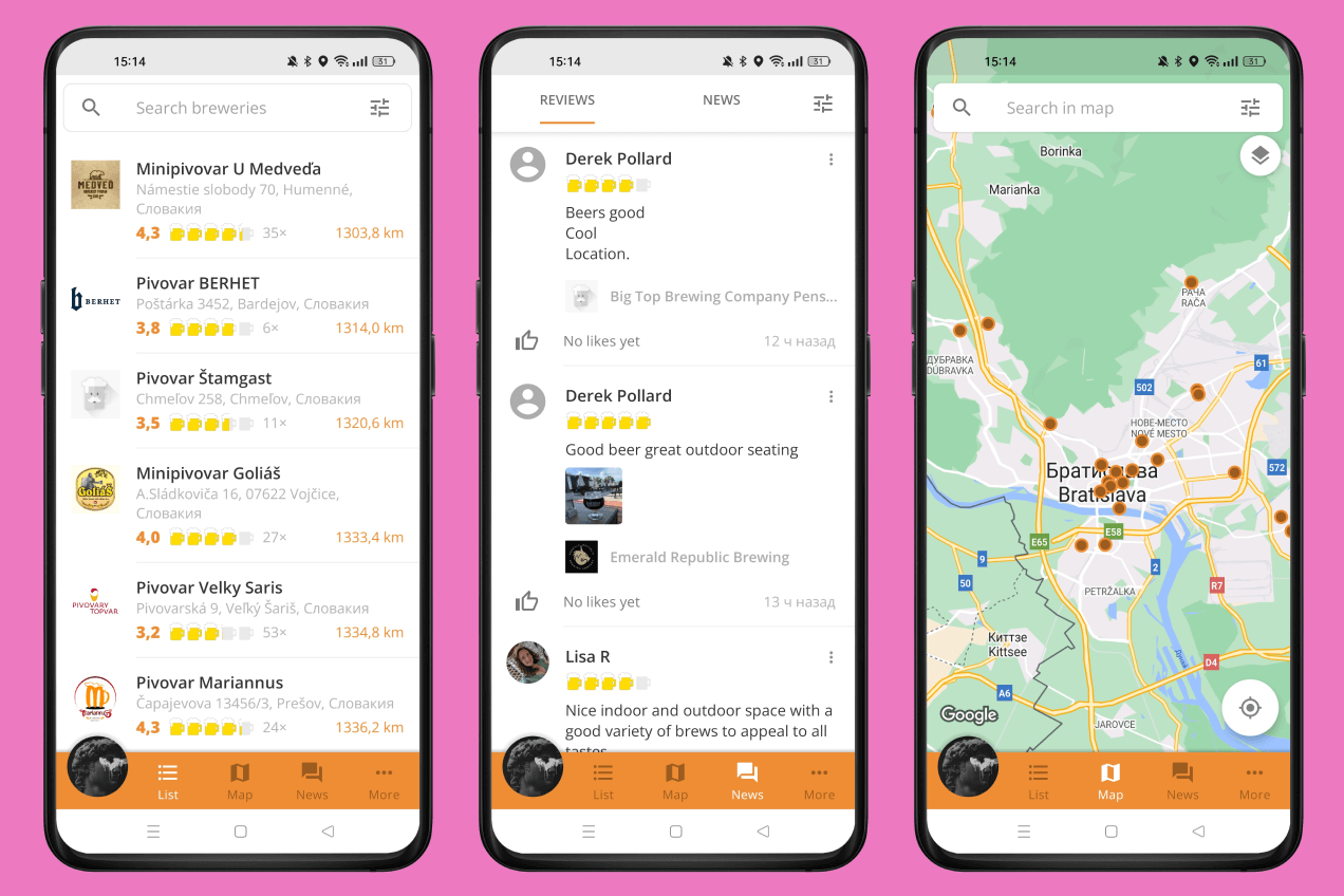 Brewee — приложение с рейтингом пива. Он отображается либо в специальной вкладке, либо на карте. Рейтинг пива поможет определиться с выбором крафтового пива или выбрать место для посещения. Кроме того, пользователи оставляют реальные отзывы, которые также вынесены в отдельную вкладку и постоянно обновляются. Отзывы пишутся на самых разных языках, поэтому, скорее всего, вам потребуется вооружиться переводчиком.