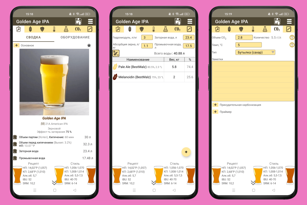 Удобный инструмент в виде мобильного приложения для помощи домашнему пивовару. Вы можете рассчитывать и составлять собственные рецепты пива, полностью контролируя процесс от первого до последнего шага. Редактор учитывает каждую мелочь: потребность в воде, хмеле, дрожжах. Остатки ингредиентов автоматически сохраняются в вашей виртуальной кладовой. Калькулятор водоподготовки позволит точно регулировать вкус пива. А гибкая настройка процесса позволит легко рассчитать примерную конечную плотность.