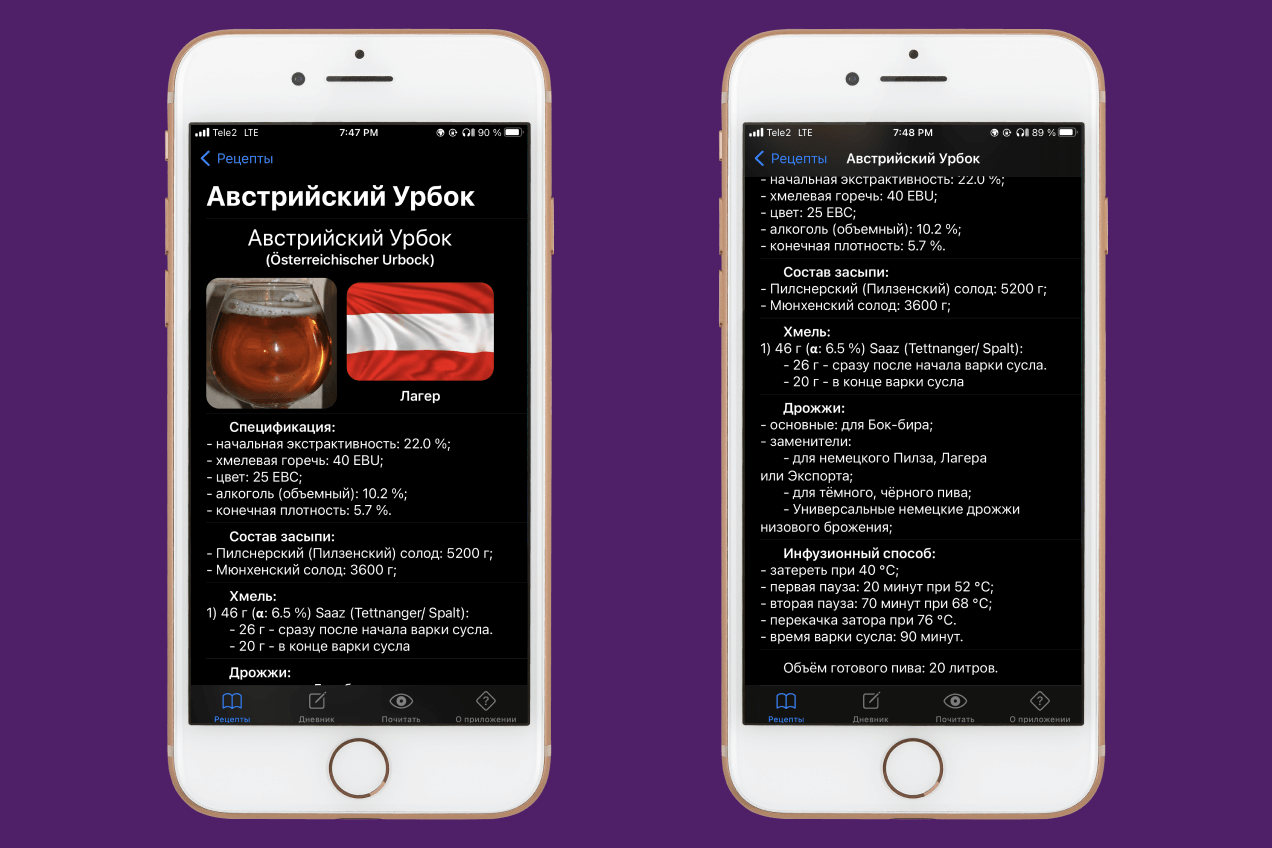 В разделе «Рецепты» хранятся более 50 рецептов наиболее популярных сортов. Записи в дневнике можно синхронизировать через iCloud, поэтому о сохранности данных вы можете не беспокоиться. Кроме того, в BeerCrafter вы найдете полезные статьи, которые расскажут о видах пива, познакомят с теорией пивоварения и методами приготовления. Приложение полностью бесплатное и без рекламы. Связь с разработчиком (как и добровольные пожертвования) налажена через главное меню, поэтому при возникновении вопросов вы можете смело рассчитывать на обратную связь.