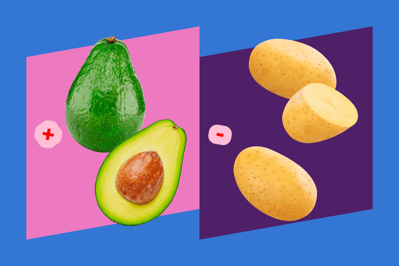 Авокадо (1 шт.) разрежьте на две части, отделите косточку и чайной ложкой достаньте мякоть. Спелый авокадо — мягкий и легко очищается от кожуры.