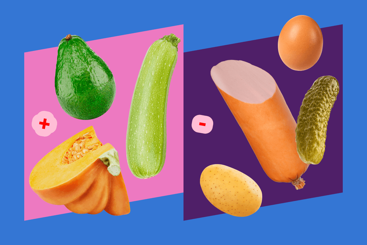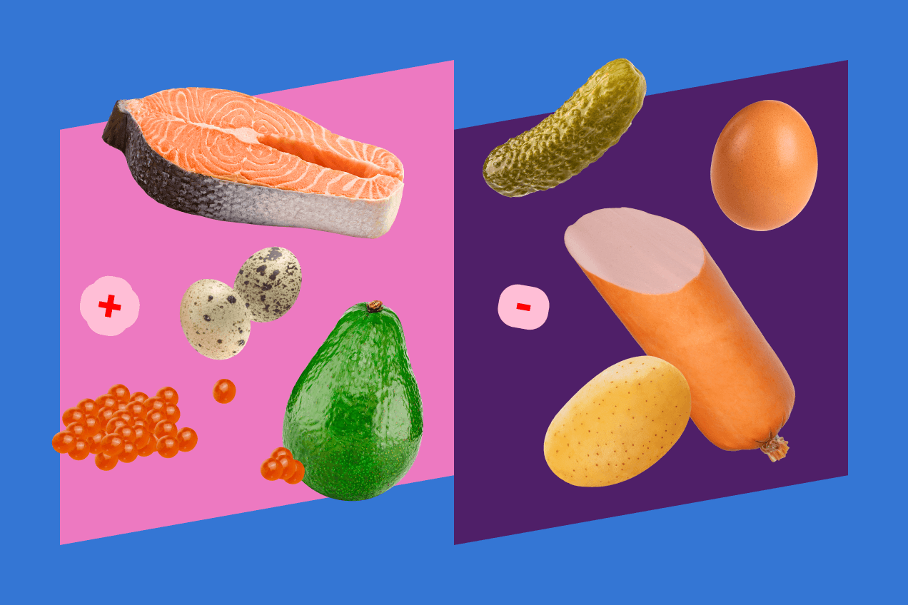 Соедините авокадо, морковь и яйца в миске, добавьте полбанки зеленого консервированного горошка, нарезанные кубиками свежий огурец и красную рыбу (слабосоленая форель в упаковке подойдет), красную икру. Количество рыбы и икры — на ваш вкус.