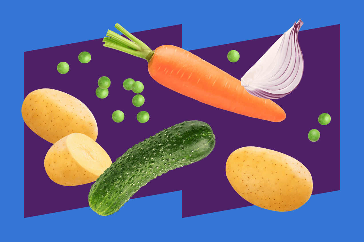 Очистите картофель (4 шт.), нарежьте кубиками и отварите в подсоленной воде. После его необходимо потолочь так, чтобы остались небольшие кусочки. Добавьте 2 ст. л. яблочного уксуса, перемешайте и оставьте остывать. Свежий огурец нарежьте маленькими, тонкими кусочками, посолите и оставьте в дуршлаге, чтобы стекла лишняя жидкость. Сладкую луковицу нарежьте тонкими перьями. Морковь нарежьте кубиками и отварите, но не до готовности, чтобы она слегка хрустела.