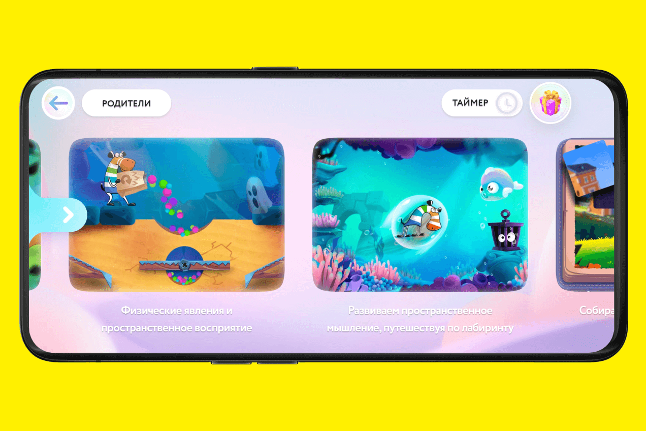 Все активности проходят под родительским контролем: в специальном разделе вы можете следить за прогрессом вашего малыша, узнать его любимые игры и настроить цели развития, с помощью специального таймера отрегулировать время, отведенное на занятия. Можно даже выбрать предпочтительные игры вручную — если, например, хотите убрать какую-то конкретную игру, или, наоборот, показывать ее в каталоге. Отдохнуть от игр можно, слушая аудиосказки, для которых есть специальный раздел.