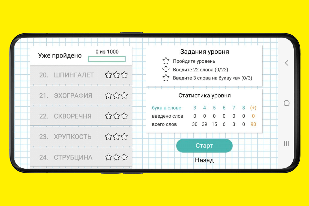 Помимо повышения общей грамотности, приложение здорово помогает увеличить словарный запас. Многие слова, даже не являясь общеупотребительными, помогут ребенку расширить кругозор и дадут возможность заинтересоваться чем-то новым. А если вы всерьез решили заняться развитием грамотности, есть полная версия — это отдельное платное приложение, в котором отключена реклама, доступно больше слов и есть несколько уровней обучения.