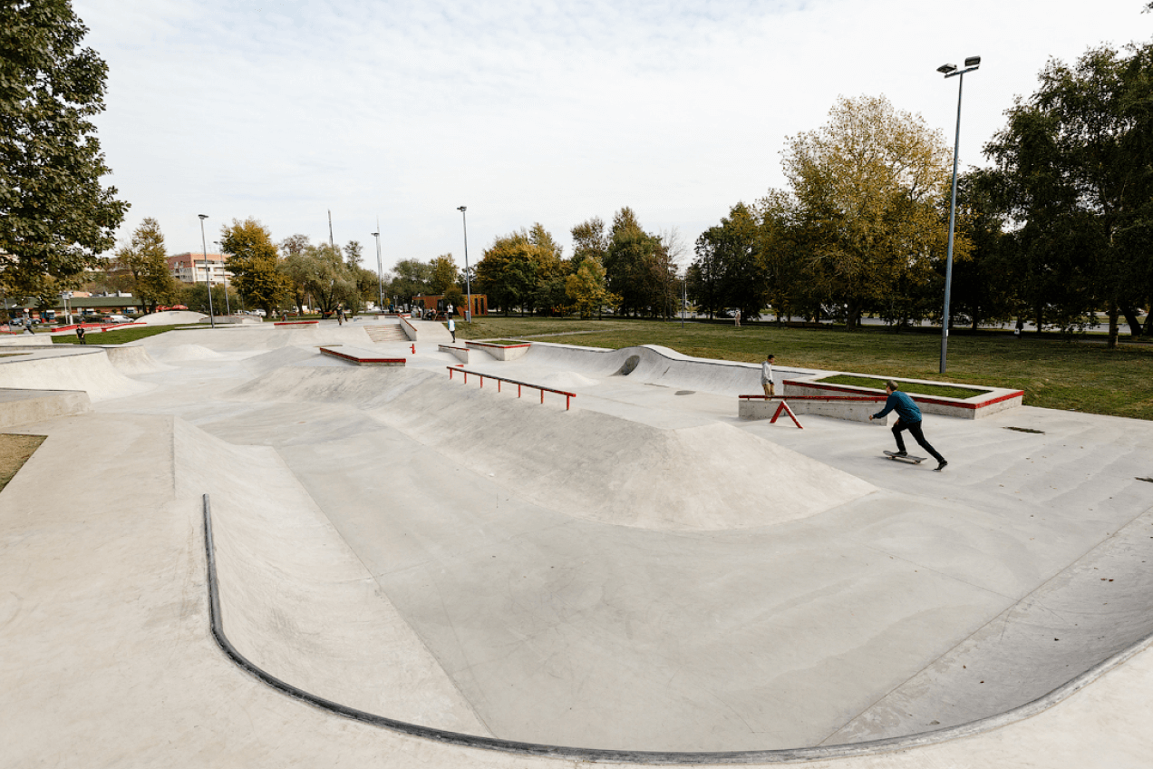 Масштабный парк, который спроектирован в том числе для катания на трюковых самокатах. Здесь есть фигуры всех уровней сложности, от начального до экспертного. Парк окружен зеленым массивом, поэтому здесь можно отлично проводить время весь день напролет, отдыхая в тени деревьев и на газоне, а вечером катание можно продолжать благодаря освещению.