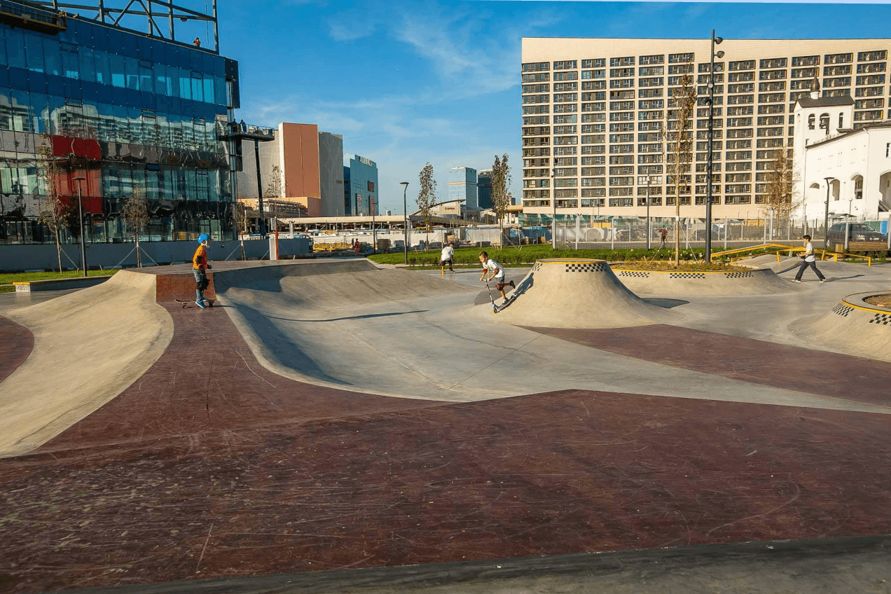 Стильный парк от скейт-бренда Vans, построенный по мировым стандартам, в окружении инфраструктуры модного центрального парка культуры и отдыха. Мороженое и кафе, фонтаны и музыка — отличное дополнение к разнообразной структуре парка, который любят все и катаются на всем.