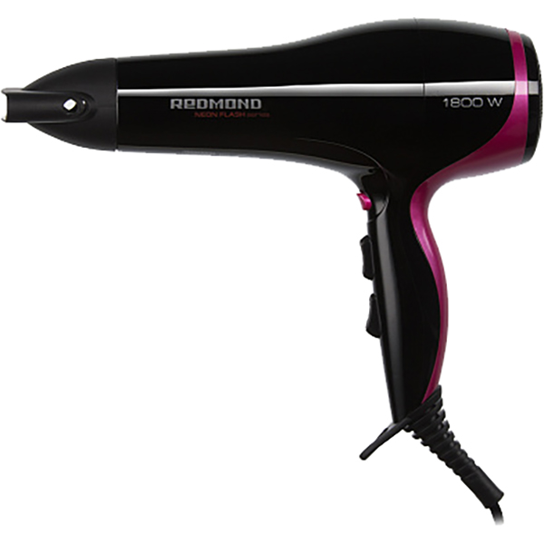 Если вам нужен недорогой, но хороший фен для волос, обратите внимание на этот прибор. Он сделан в стильном дизайне — черный корпус и фиолетовые вставки оценят любители минимализма. У прибора эргономичная конструкция — за счет правильного распределения веса и удобства ручки вы не устанете, даже если сушка и укладка займут много времени.