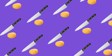 Обработка картофеля варкой и последующим замораживанием позволяет высвободить из его клеток максимальное количество жидкости и добиться рассыпчатой и нежной (а не скользкой) текстуры под корочкой. А уксус, который добавляется в воду при бланшировании, в свою очередь помогает тонким ломтикам сохранить форму, так как кислота предотвращает расщепление пектина. Это, пожалуй, самый трудоемкий рецепт в подборке, но, если использовать его как заготовку, под рукой всегда будет отличный домашний полуфабрикат.