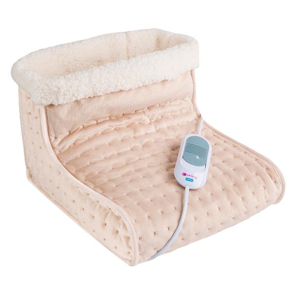 Знаю, что вы любите поговорку «держи ноги в тепле». Эта грелка похожа на большой плюшевый валенок. Здесь три температурных режима, турбонагрев за десять минут и система защиты от перегрева на случай, если вас разморило. Управление простое — через пульт.