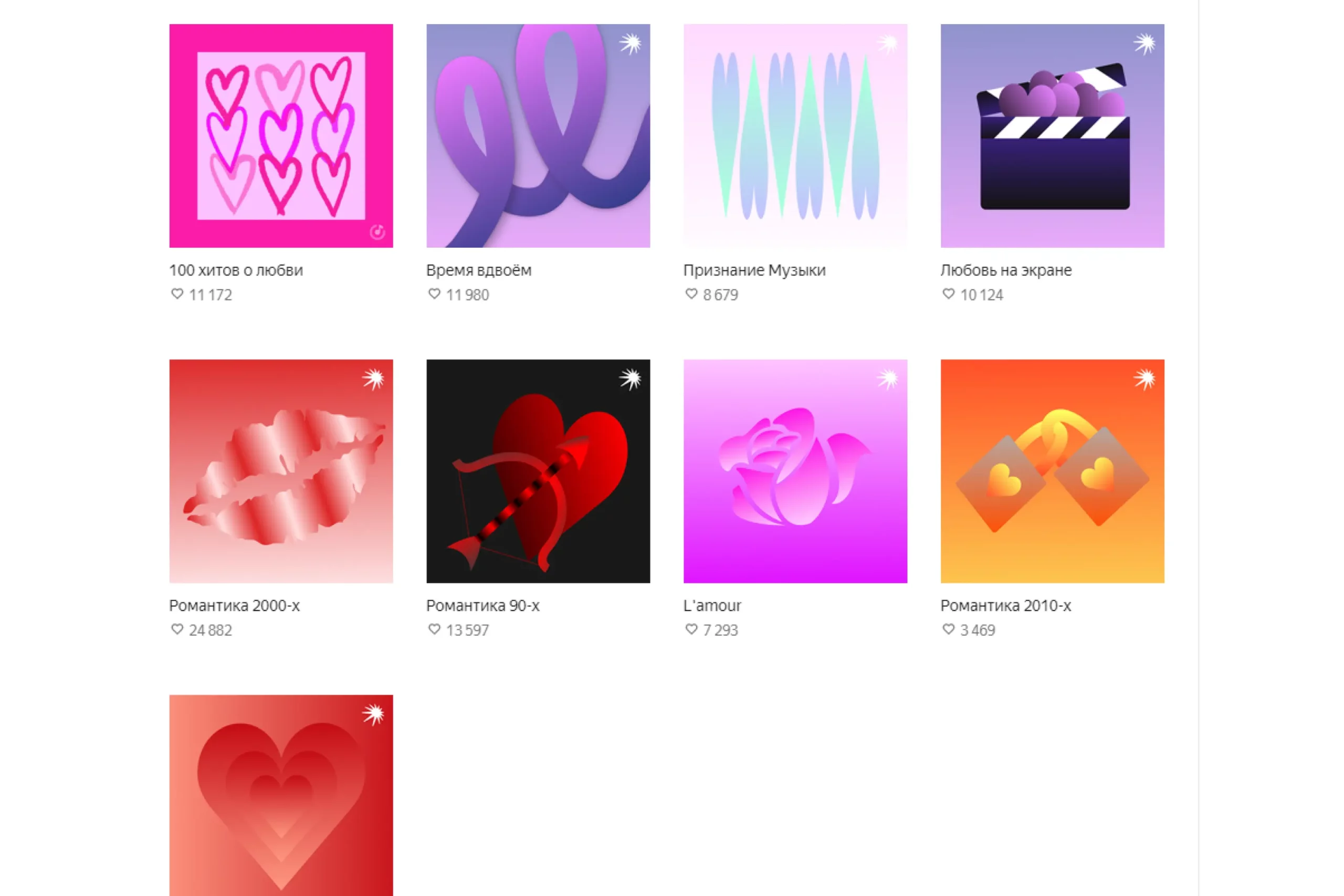 Если романтического настроения и музыки хочется, но совсем нет идей по содержанию плейлиста, то на «Яндекс Музыке» в свободном доступе уже есть множество подборок, составленных другими пользователями. Выбирайте ту, которая подходит вам по настроению и музыкальным предпочтениям.