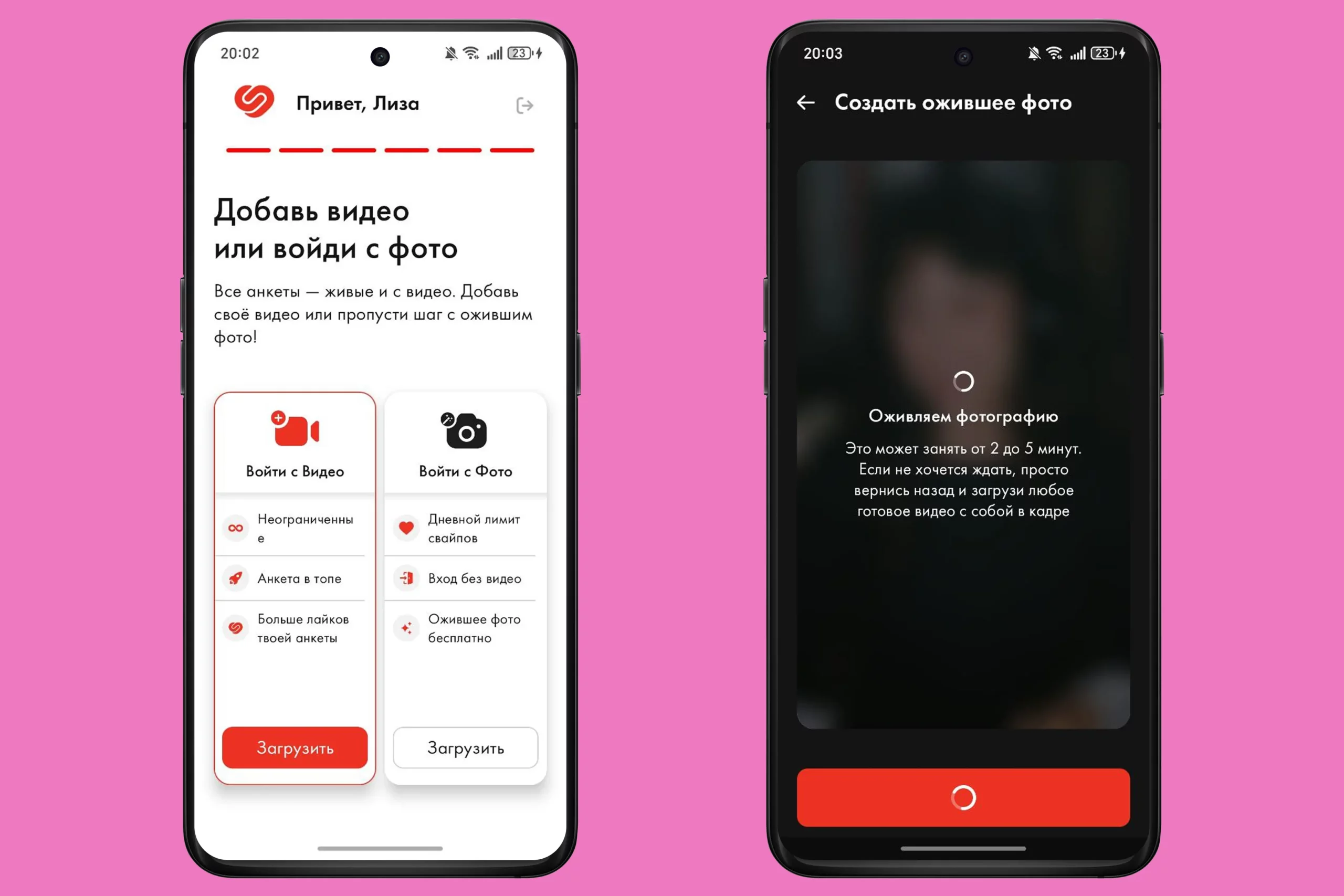 Приложение для знакомств с видео, в которое можно зайти с главного экрана мобильного приложения SUNLIGHT. Приложение очень приятное внешне. Айдентика и визуальный стиль разработаны студией Артемия Лебедева. Зарегистрированные пользователи проходят онбординг и могут загрузить первое видео или оживить фото. Потом доступны отправка симпатий, создание пар и общение.
