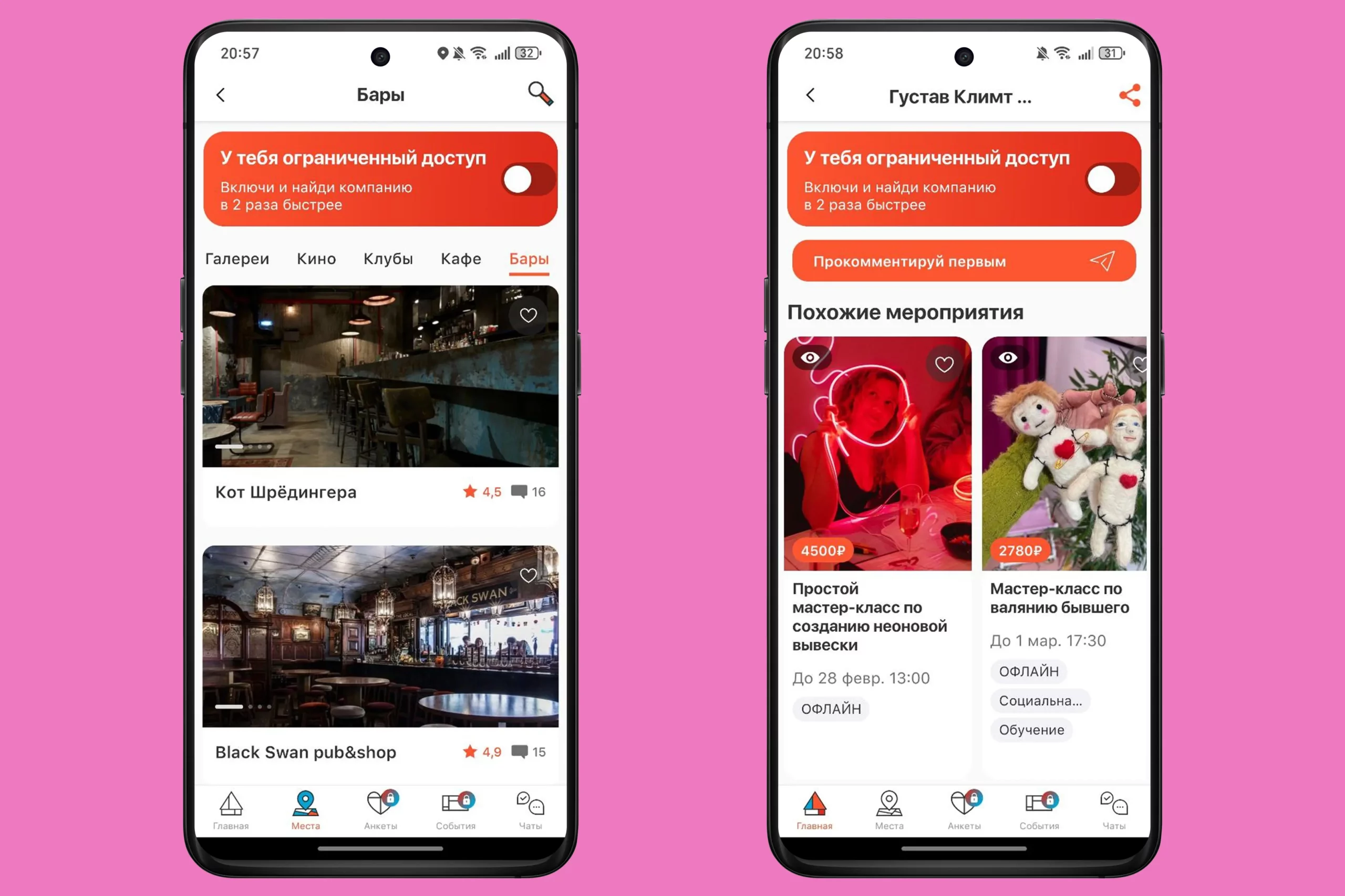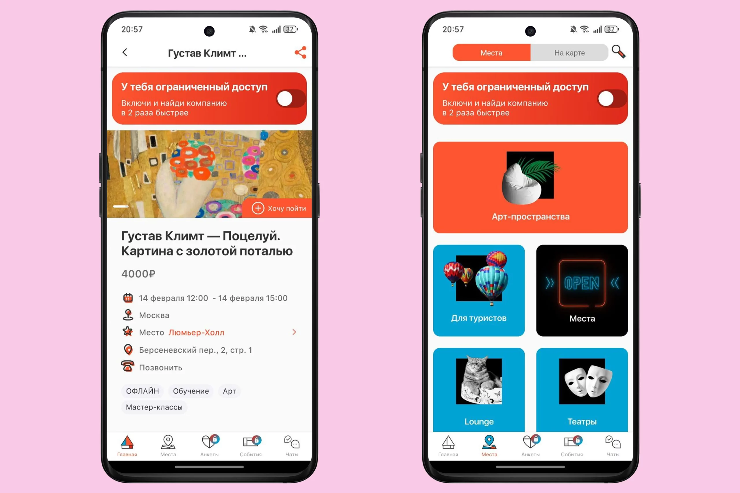 Самое лучшее приложение для знакомств, если вы любите культурные мероприятия и не против сразу выйти из вирта в реал. Сервис работает в Москве и Санкт-Петербурге. В приложении собрана актуальная афиша необычных мероприятий: от камерных концертов и выставок до городских фестивалей и вечеринок.