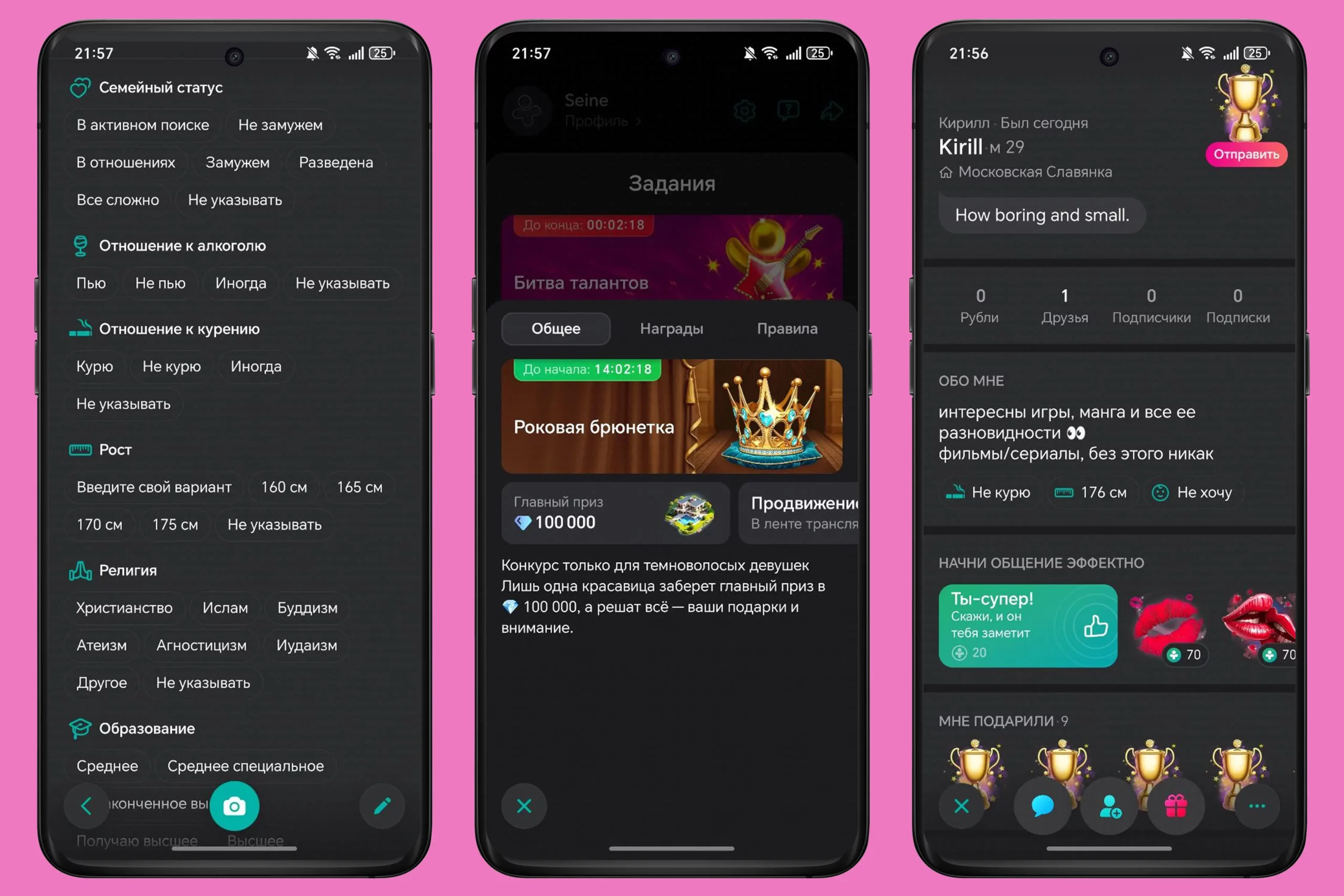 Анкеты пользователей проходят модерацию, благодаря чему в приложении меньше фейковых аккаунтов и случайных профилей. Интерфейс приложения достаточно простой.