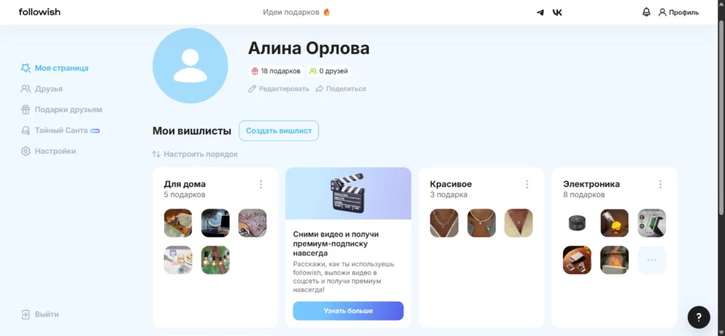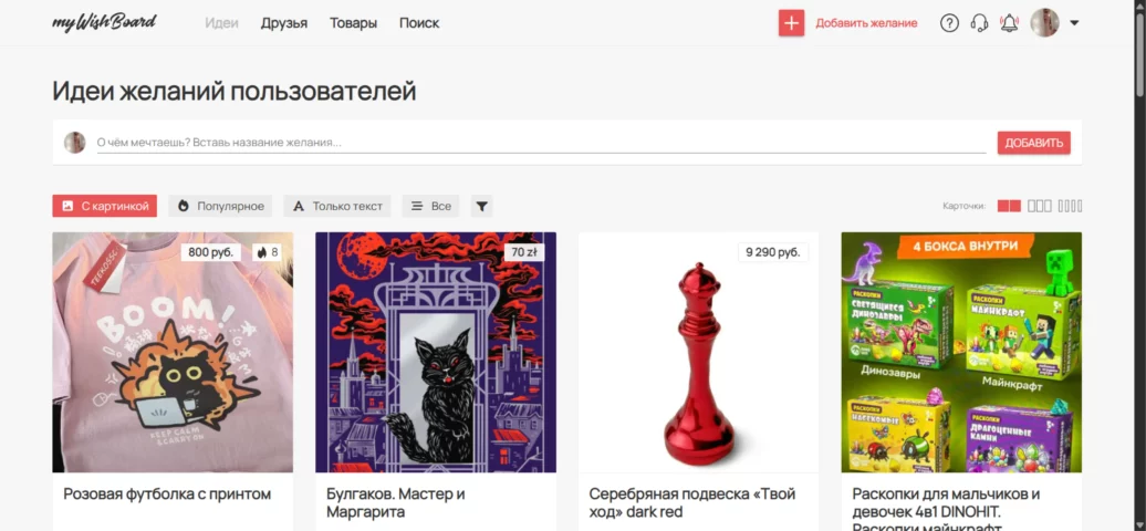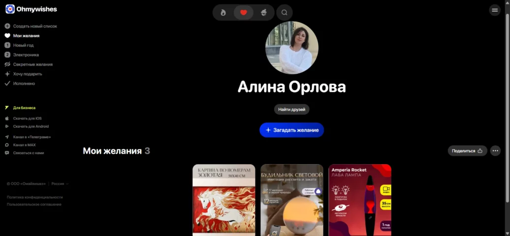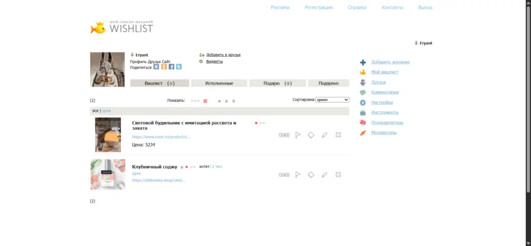 Wishlist.ru — крупнейший русскоязычный сайт для вишлистов, где сидит огромная аудитория. Интерфейс простой, но устаревший — нужно время, чтобы привыкнуть, но функционал полностью это компенсирует.