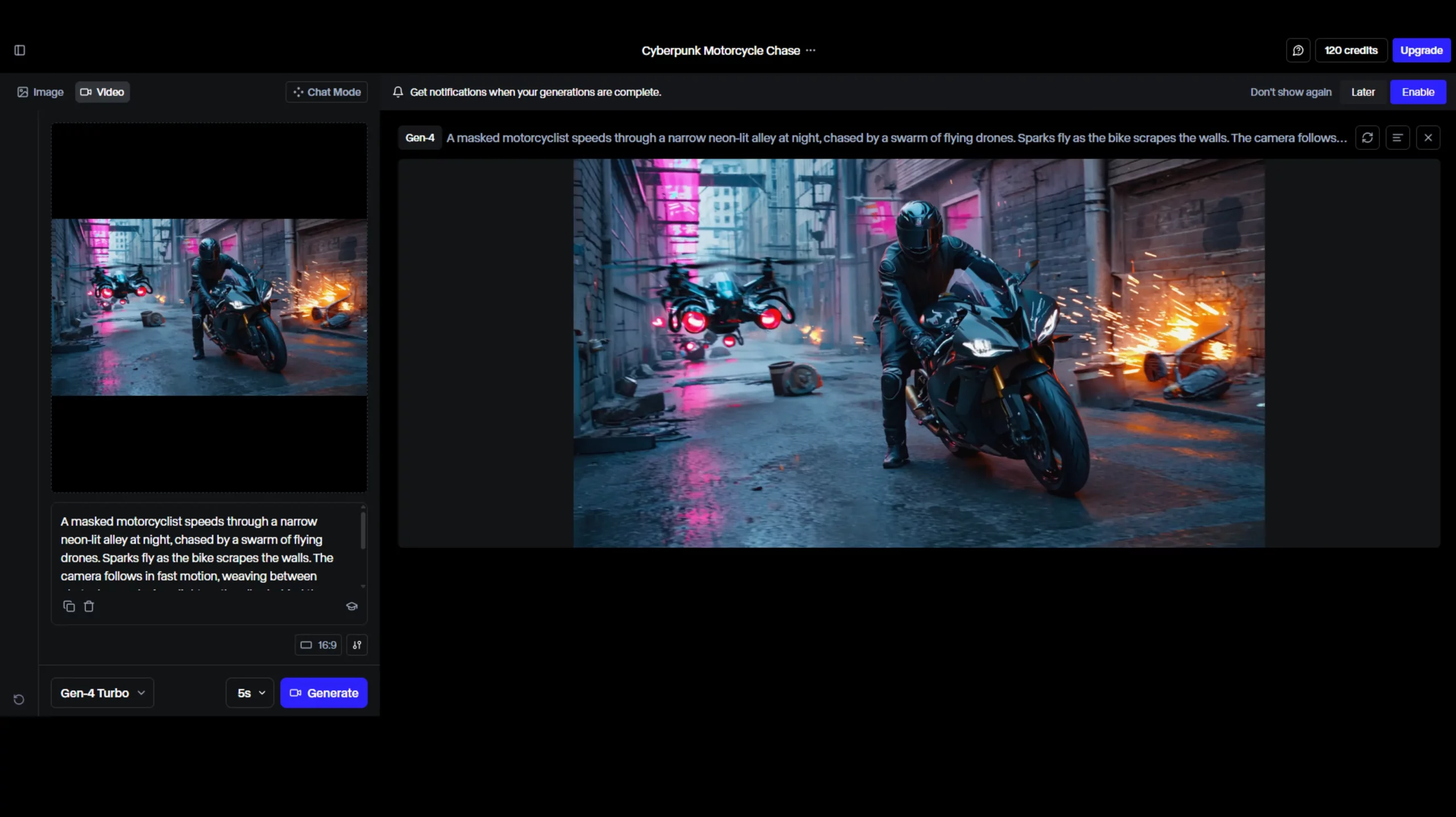 Регистрируетесь на сайте. Вводите текстовый запрос или загружаете изображение/видео. Нажимаете Generate — через пару минут получаете ролик.