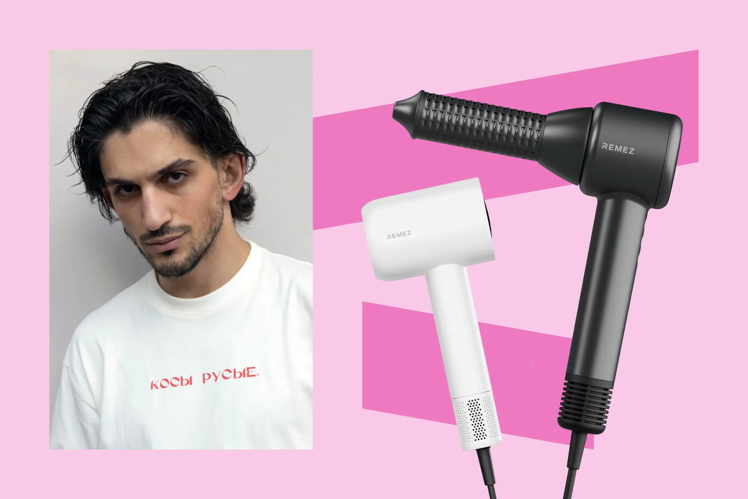 Лично я в работе использую фен REMEZ Model E. Суперлегкий, эргономичный, красивый, мощный. А домой рекомендую REMEZ Model S — он с дисплеем, где можно менять разные настройки и создавать индивидуальный режим под себя. Здесь даже есть детский режим сушки волос.