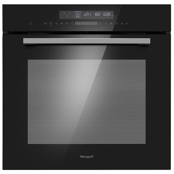 Духовка простая в управлении и удобная в использовании. На сенсорном дисплее отображаются текущие параметры работы, есть таймер для обратного отсчета и звуковое оповещение о завершении режима. Двухслойная стеклянная дверца не нагревается снаружи, поэтому нет риска обжечься. Есть не только 13 режимов работы духовки, но и четыре автоматические программы — можно указать информацию о количестве ингредиентов, и духовка самостоятельно приготовит нужное блюдо. Есть функция готовки паром для здорового питания.