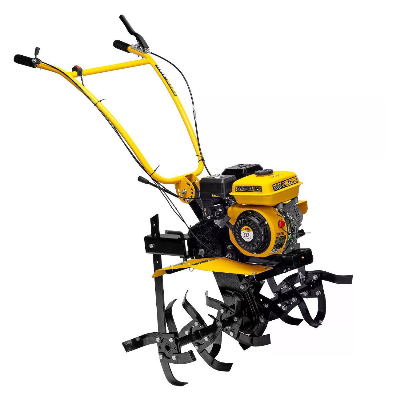Следующая модель в рейтинге бензиновых мотоблоков — выбор экономных дачников. При этом характеристики техники указывают на то, что с ее помощью можно пахать-боронить участок площадью до 30 соток: мощность двигателя — 7 л. с., глубина обработки — 35 см, ширина — 85 см. По последнему параметру сельхозмашина проигрывает мотоблокам, представленным выше, нет у нее и вала отбора мощности, но компактные размеры и вес в 68 кг облегчают транспортировку, управление и хранение, а цена располагает к покупке. Особенно если вы не планируете пользоваться активным навесным оборудованием. С базовой обработкой почвы (культивацией, рыхлением, окучиванием) техника справится.