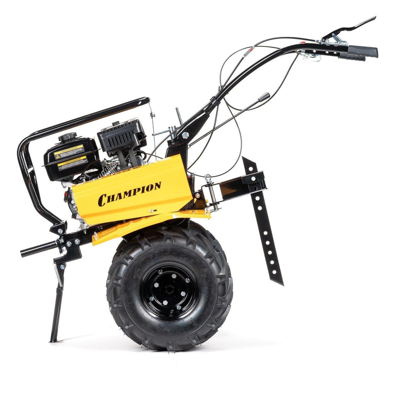 Мотоблок от Champion обладает системой облегченного старта, которая упрощает запуск 7-сильного двигателя. Его защите от внешних факторов производитель также уделил внимание. Эту сельхозмашину покупают для возделывания земли и перевозки грузов, в чем помогают три передачи вперед и одна задняя скорость. Вала отбора мощности у модели нет, но активную навеску можно подключить через ремень. Ширина обработки земли — 81 см, глубина — 35 см. А значит, мотоблок годится не только для дачи, но и для огородов площадью до 30 соток.