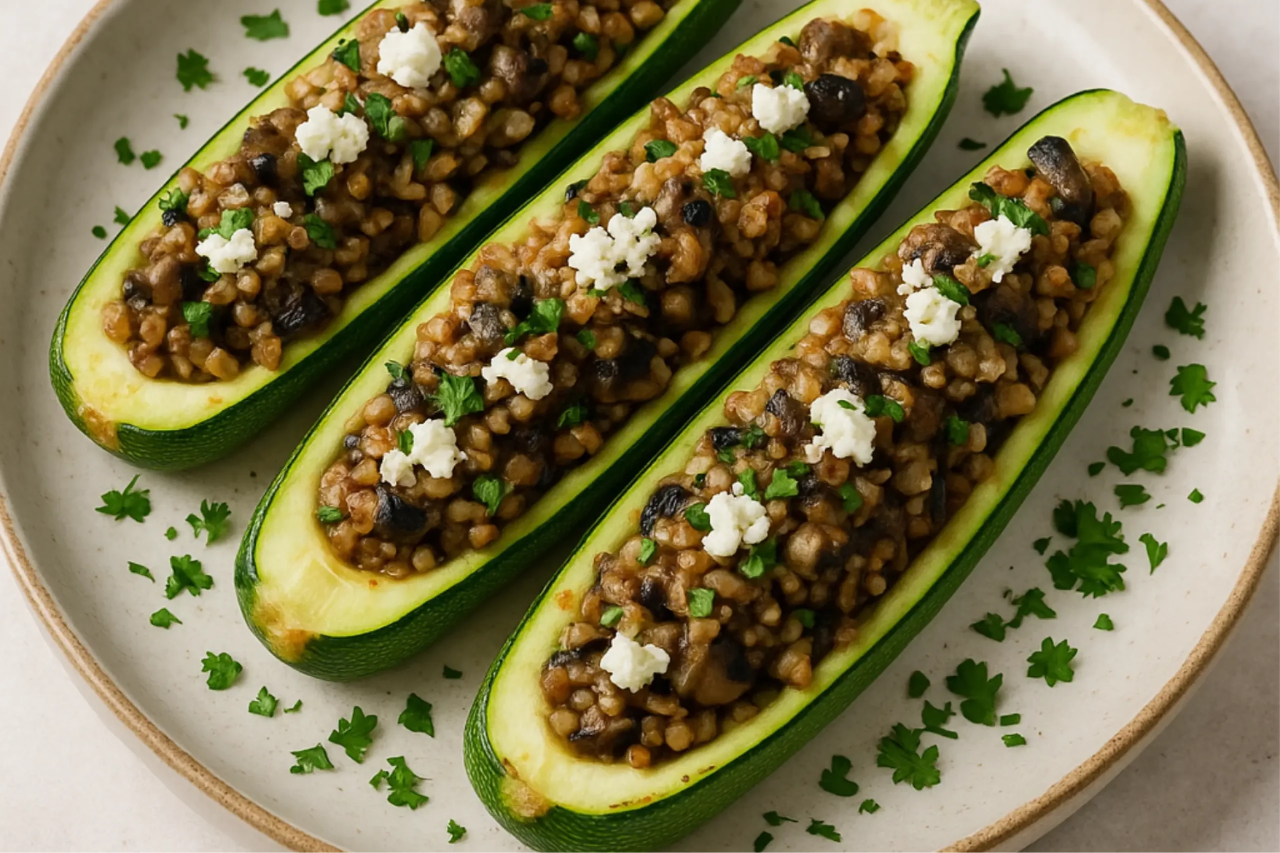 Вегетарианский вариант: кабачки-лодочки с ароматной гречневой начинкой.