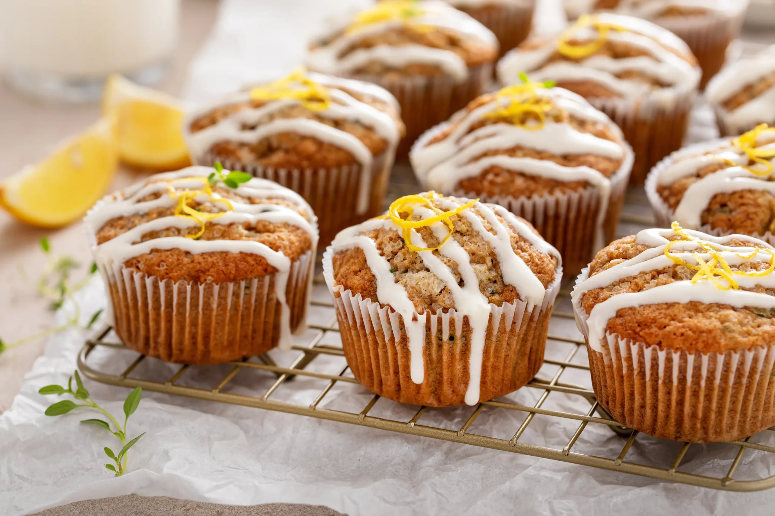 Еще один неожиданный вариант: кабачки добавляют сочность, а лимон с маком делают вкус освежающим. Кексы — отличный вариант для десерта или легкого перекуса.