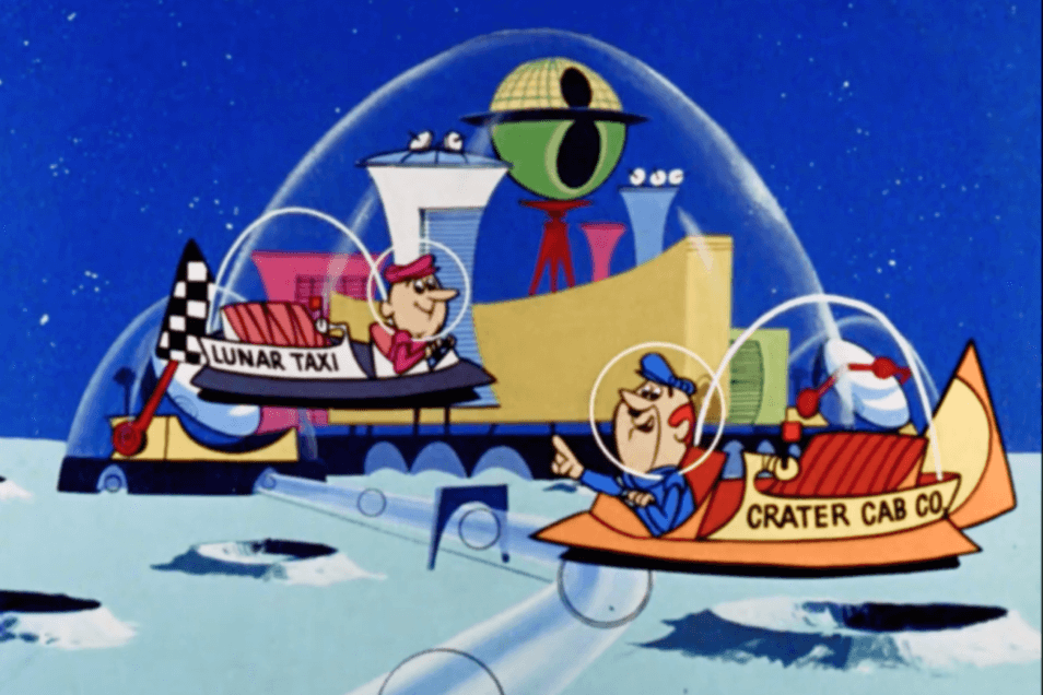 В светлом будущем землянам не придется постоянно торчать на одной и той же планете — в «Джетсонах» космический туризм стал обыденностью, хотя на момент выхода сериала реальных покорителей космоса можно было пересчитать по пальцам. В эпизоде The Good Little Scouts семья отправляется на лунный пикник — для этого им не нужно проходить изнурительную подготовку и страдать на тренажерах. Достаточно лишь добраться до космопорта и махнуть на спутник Земли, в отель Moonhattan Tilton Hotel.