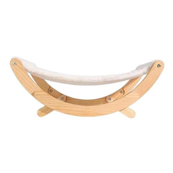 Любой котик в такой кроватке будет проводить большую часть времени. Каркас из дерева и металла выглядит аккуратно и не разваливается после первого прыжка с разбега. В комплекте есть мягкая подушка-накладка, которую легко снять и почистить. Лежак компактный, не захламляет комнату и отлично вписывается в интерьер. В итоге кот получает личную зону отдыха, а хозяин — возможность вытянуть ноги на своем диване.