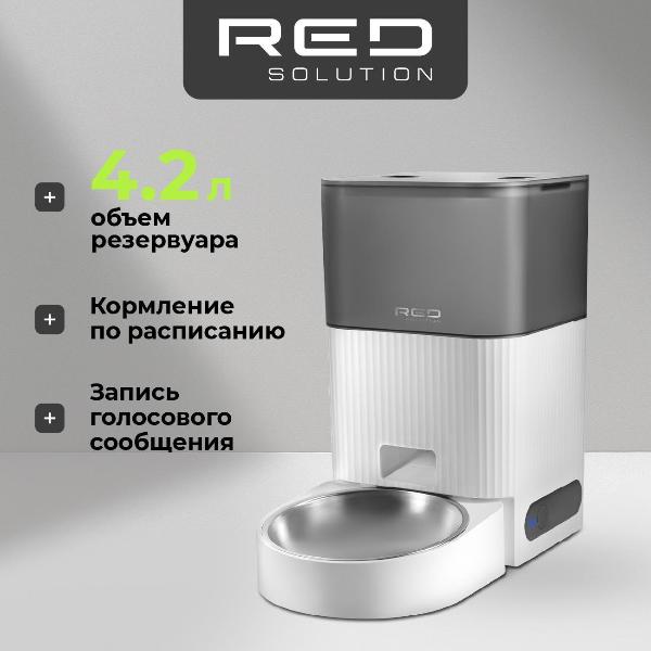Внутри бункер на 4,2 л — корма хватит надолго. Умные датчики предупредят, когда запас еды будет подходить к концу. В приложении RED Smart можно установить расписание и определить размер порции.