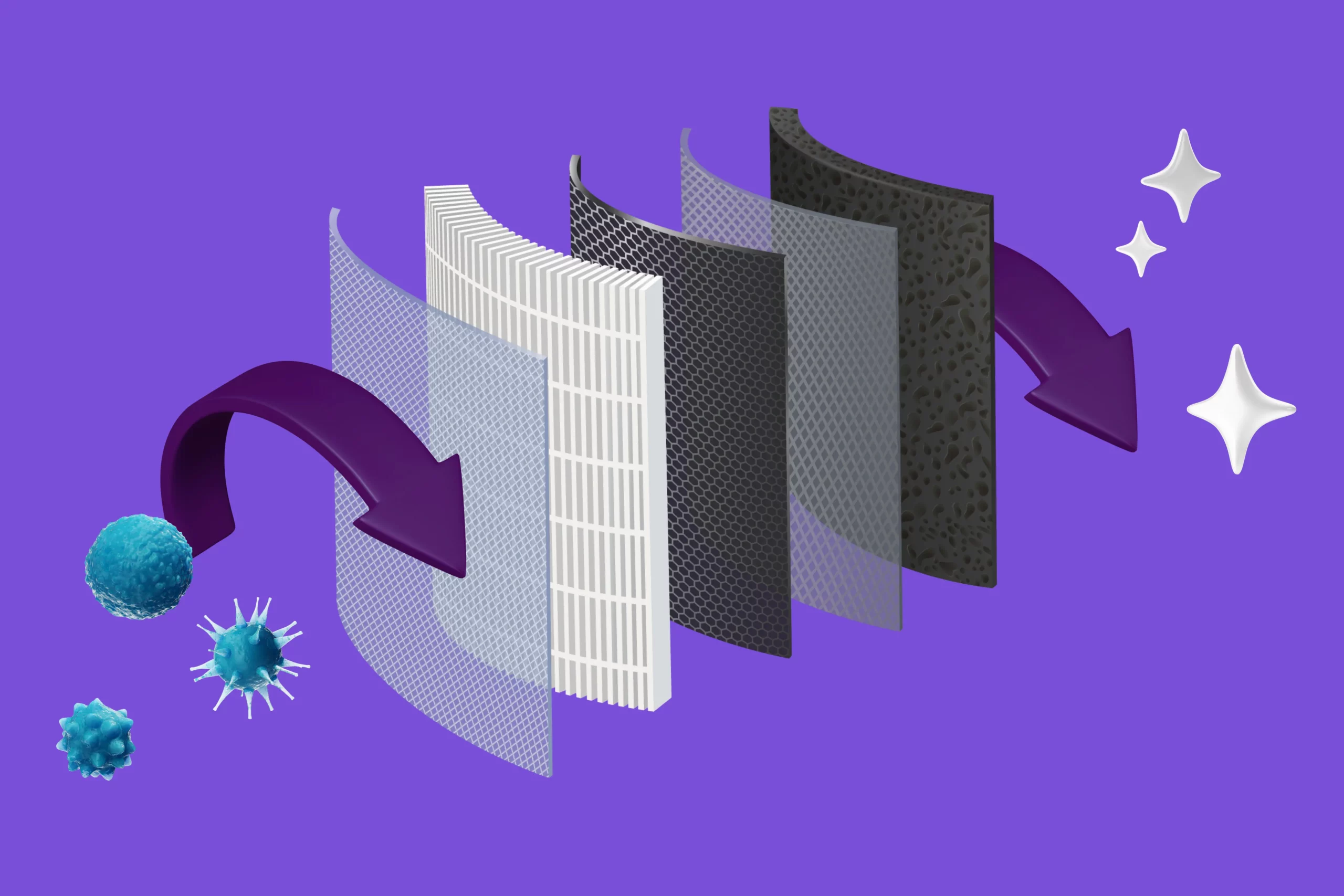 - HEPA-фильтр — плотный материал гармошкой, улавливающий мельчайшие частицы пыли, пыльцу и даже споры плесени. Мастхэв для аллергиков. Не все HEPA-фильтры одинаковы. Обращайте внимание на класс очистки. Базовый вариант — HEPA H11 (E11), он задерживает более 95% частиц. Этого достаточно для борьбы с обычной пылью. Но если нужно защититься от аллергенов, ищите маркировку HEPA H13 или H14. Такие фильтры ловят уже 99,95−99,995% загрязнений, включая мельчайшие вирусы и бактерии. Помните: чем плотнее фильтр, тем мощнее должен быть вентилятор, иначе прибор будет шуметь, но слабо тянуть воздух.