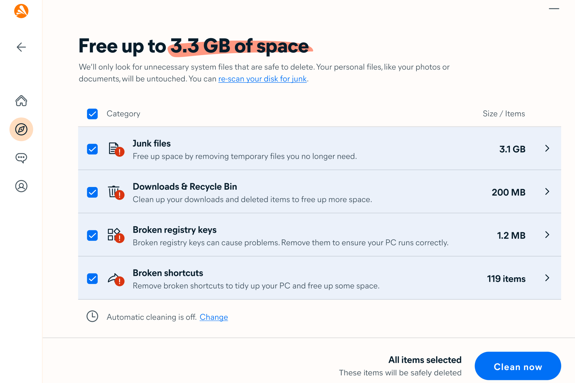 - очистка системы — удаление ключей реестра, файлов кэша и прочей информации, которая уже не нужна для работы приложений, но не была удалена автоматически, занимает место в памяти и снижает быстродействие системы.