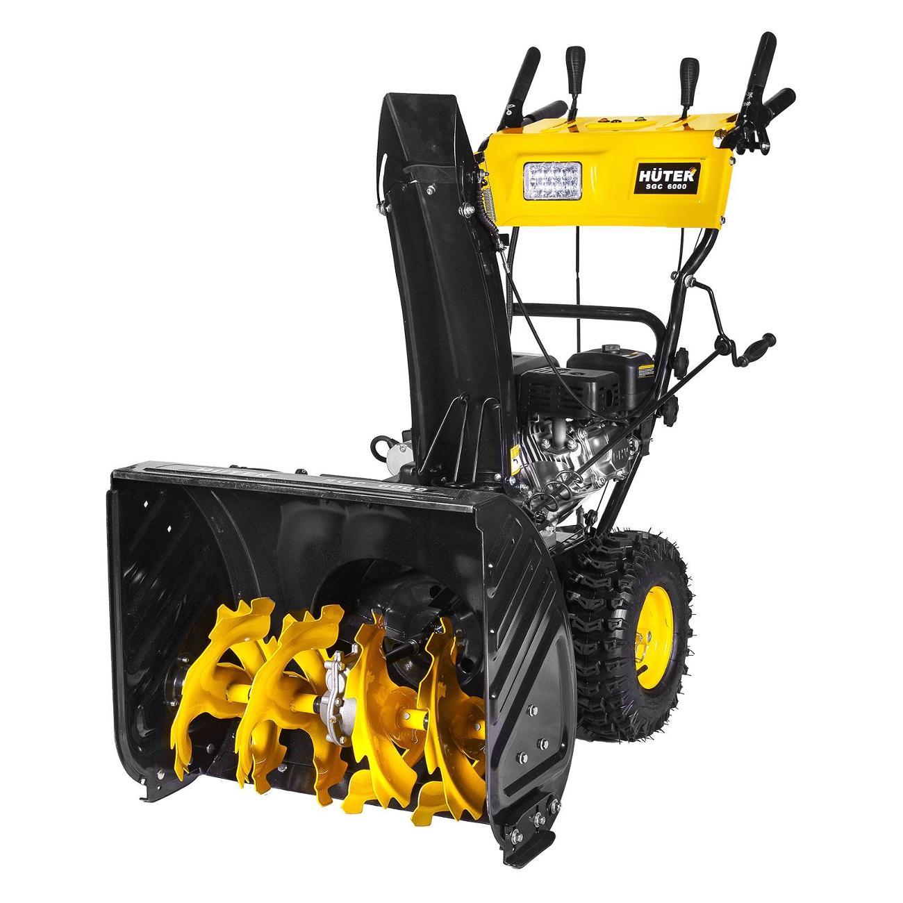 Снегоуборщик из линейки колесных машин Huter, способный справиться с большим количеством снега. Мощность двигателя — 8 л.с. Электростартер существенно облегчает запуск двигателя в мороз. Выраженные грунтозацепы на колесах позволяют двигаться без пробуксовки. Тут 6 передач вперед и 2 — назад. Ширина ковша — 62 см, а весит техника 85 кг. Пользователи в отзывах пишут: «С этой машиной справится даже девушка. Работает хорошо, без нареканий. Свою работу выполняет прекрасно».