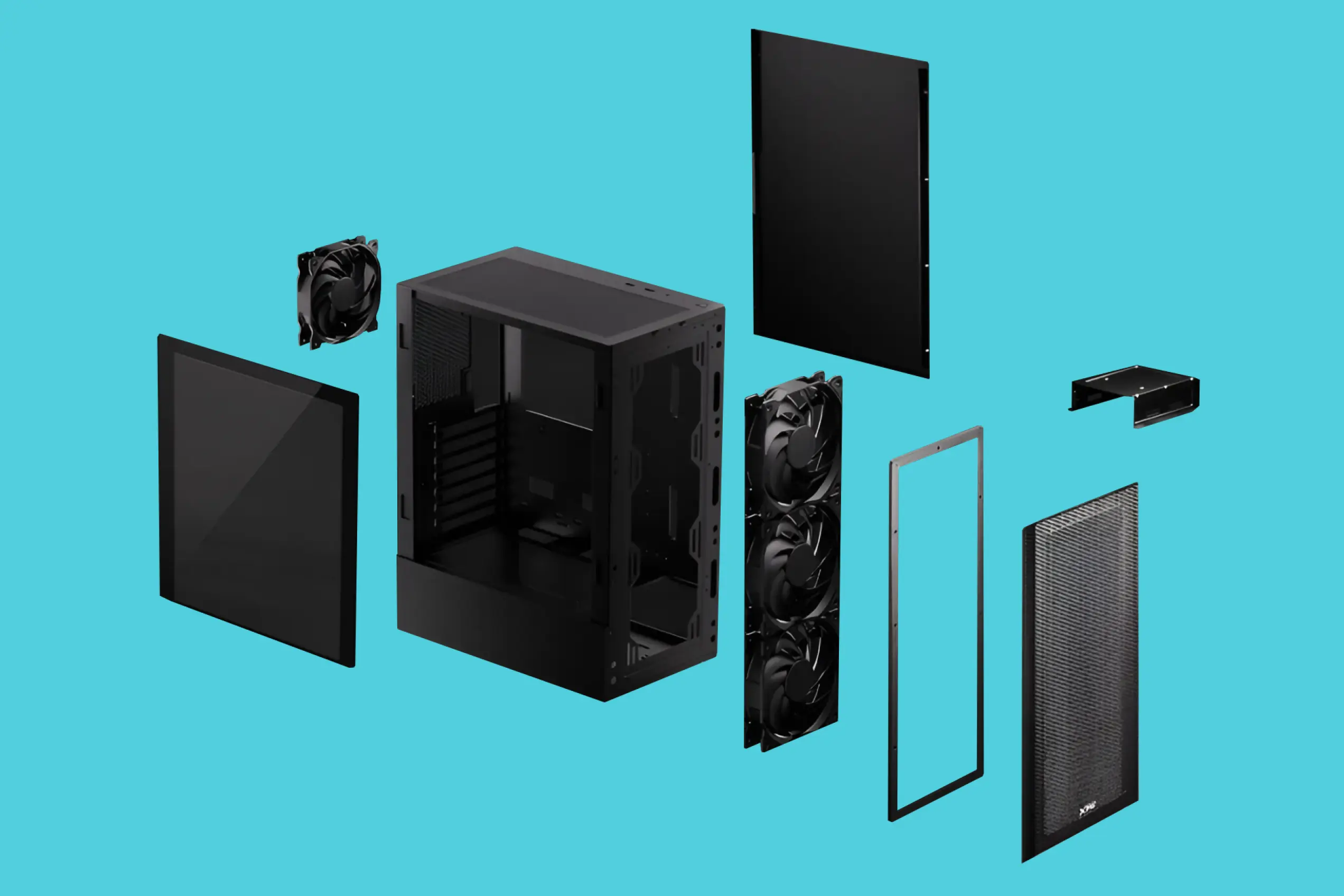 «Скелетом» для сборки выступает корпус ADATA XPG VALOR MESH. Это бюджетная модель с отличным продувом благодаря сетке спереди и сверху. Комплектующие сборки не сильно «горячие», поэтому корпус тут с большим запасом. Однако в случае перехода на более мощное железо кейс менять не придется, ведь в ADATA XPG VALOR MESH есть не только посадочные места под вентиляторы, но и крепления для радиаторов СЖО — до 360 мм спереди и до 240 мм сверху.