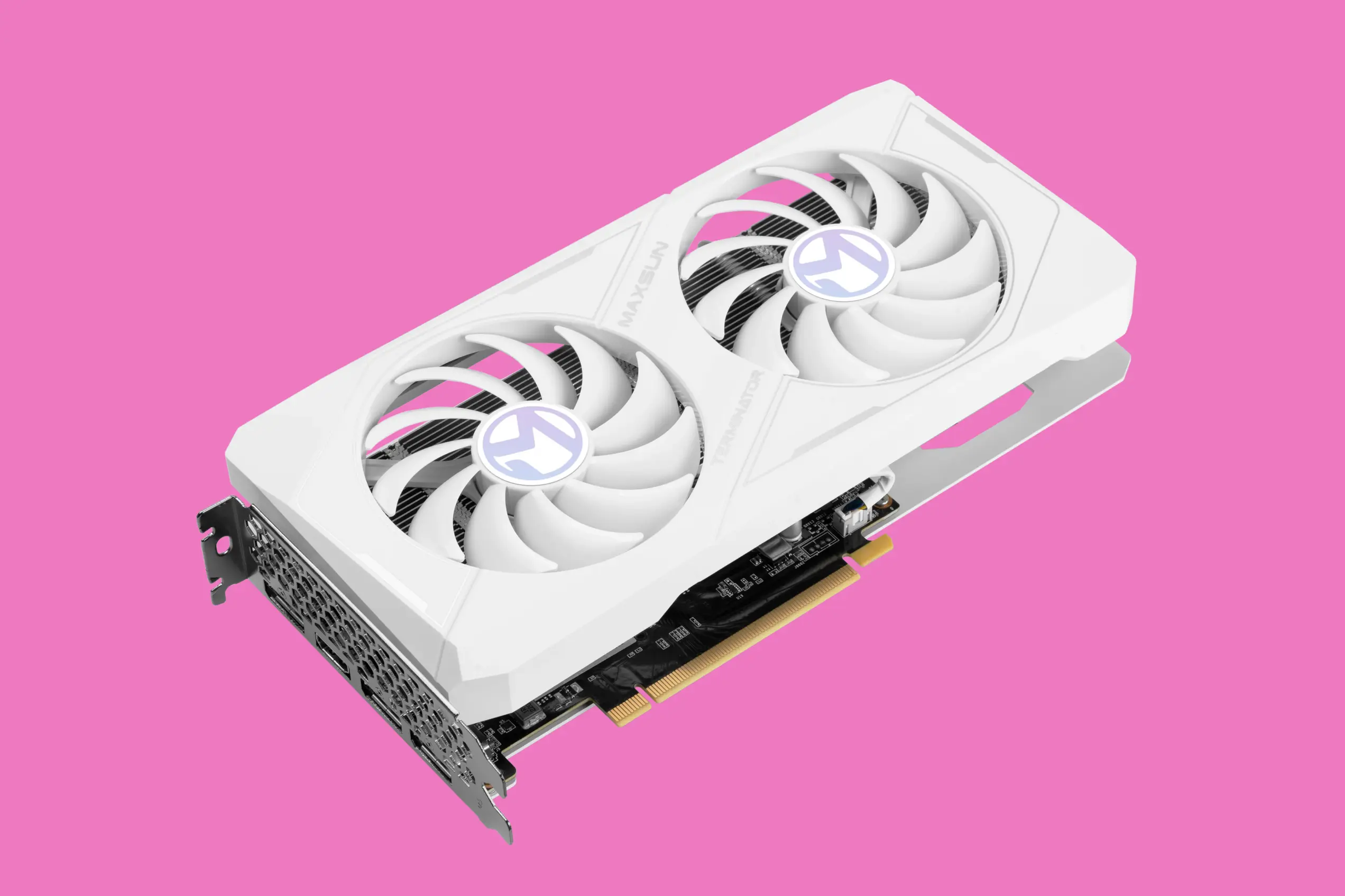 Видеокарту выбирайте по принципу дешевизны. RTX 4060 Ti даже под нагрузкой греется несильно, поэтому гнаться за топовыми трехвентиляторными решениями не стоит. Подойдут даже малоизвестные модели китайских брендов, например MAXSUN GeForce RTX 4060 Ti Terminator White с 8 ГБ видеопамяти.