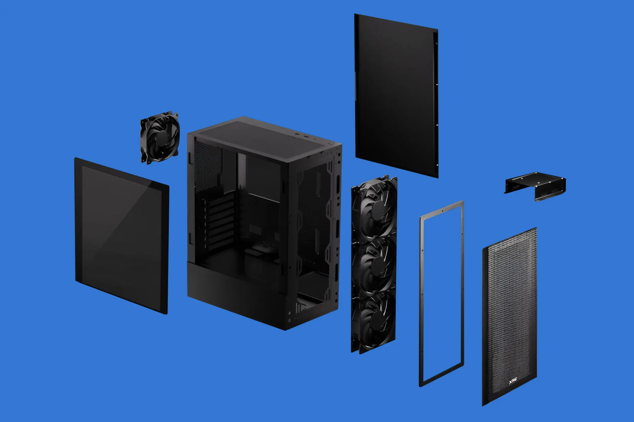 Чтобы горячий воздух не застаивался в корпусе и дополнительно не подогревал комплектующие, подбирайте проветриваемый корпус, такой как ADATA XPG VALOR Mesh. За свою стоимость это почти идеальное решение. Но в комплекте у него нет вентиляторов, а они понадобятся.