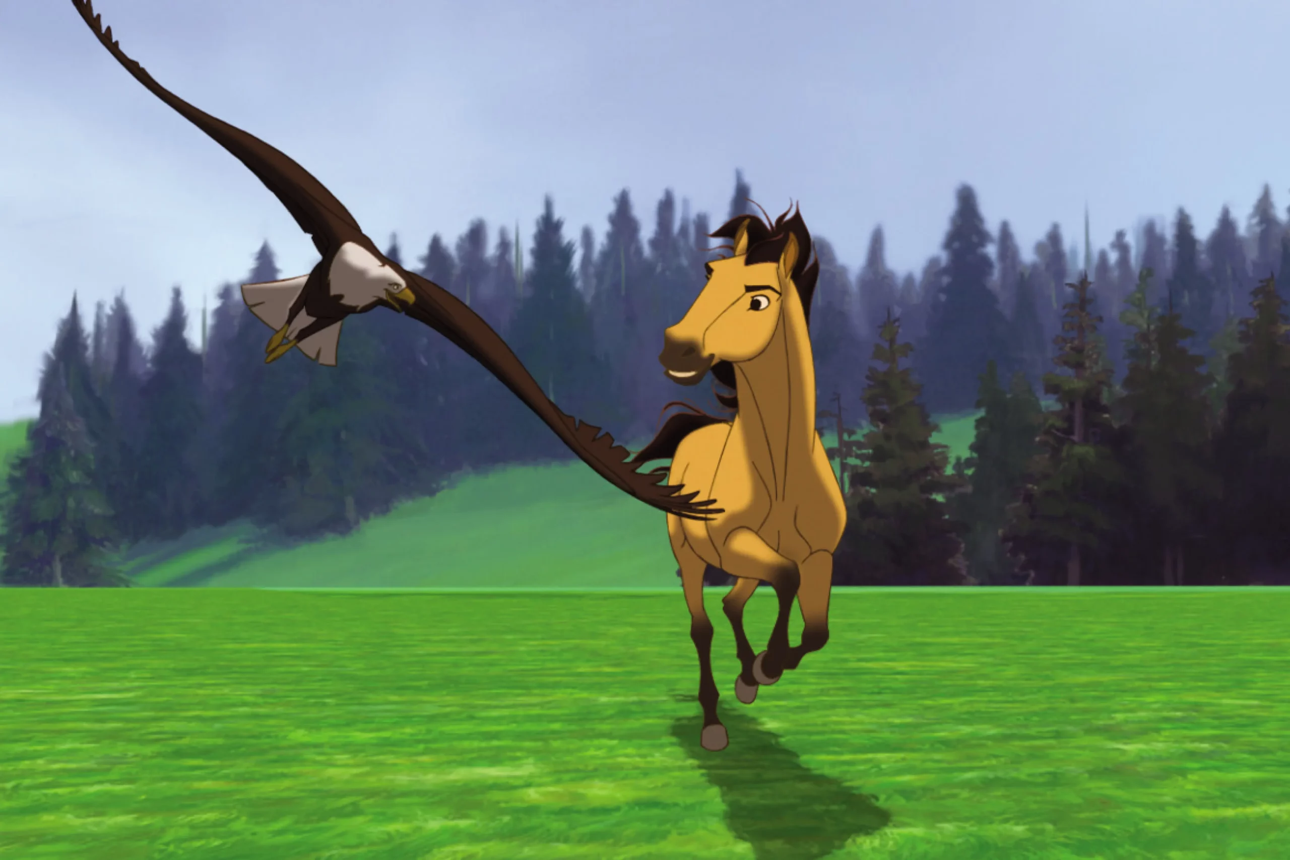 Закрывает топ фильмов про лошадей «Спирит: Душа прерий» — один из самых известных анимационных фильмов о благородных лошадях, рассказывающий историю дикого мустанга, который живет на просторах американской прерии. Его ловят и пытаются приручить, но Спирит сохраняет свободолюбивый характер, защищая друзей и родные земли. История показана глазами лошади, без слов: все эмоции передаются мимикой и движениями, а музыка Ханса Циммера и Брайана Адамса усиливает драматизм и романтику приключений, делая картину одновременно трогательной и эпичной.